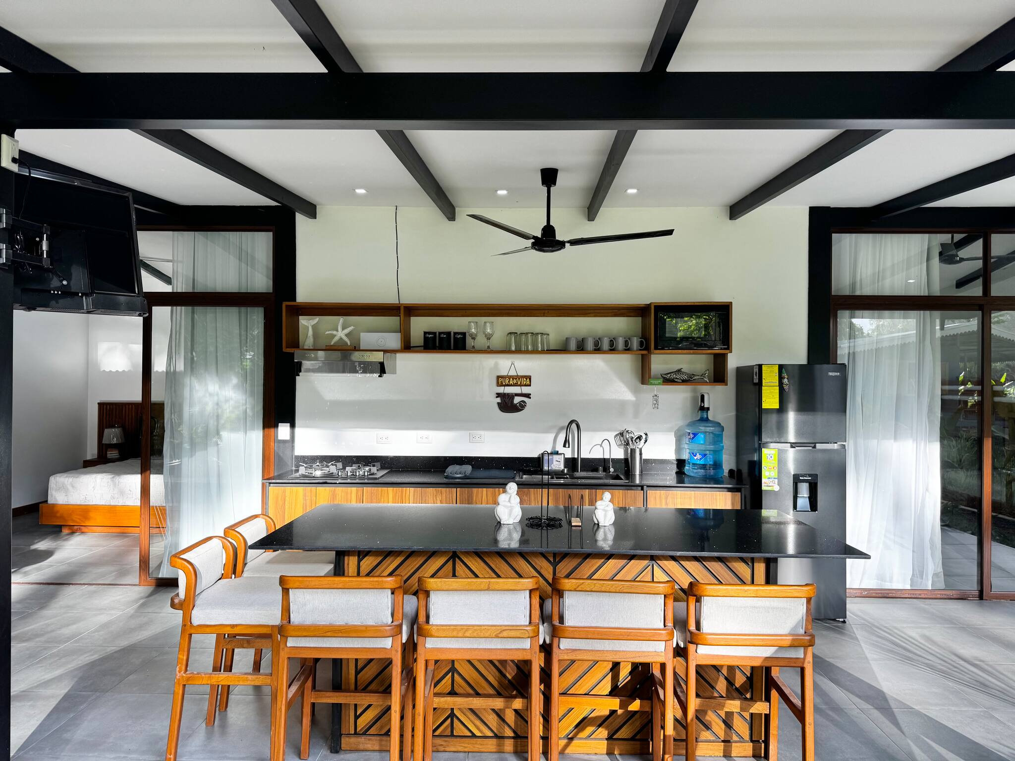 La casa en Puerto Viejo posee 2 habitaciones y capacidad para 6 personas.