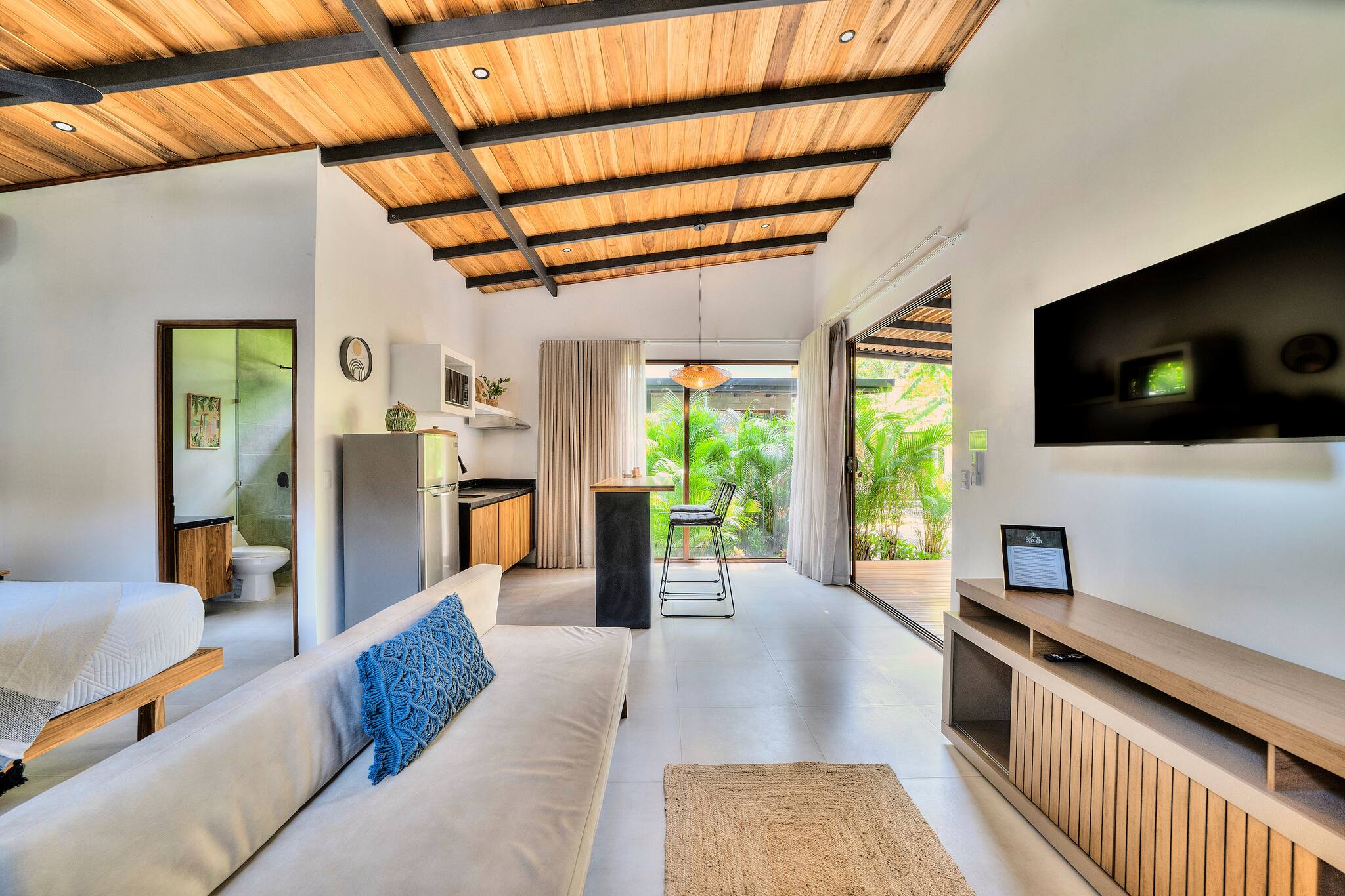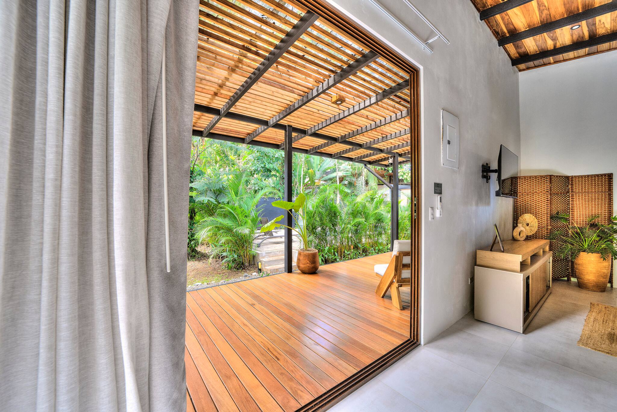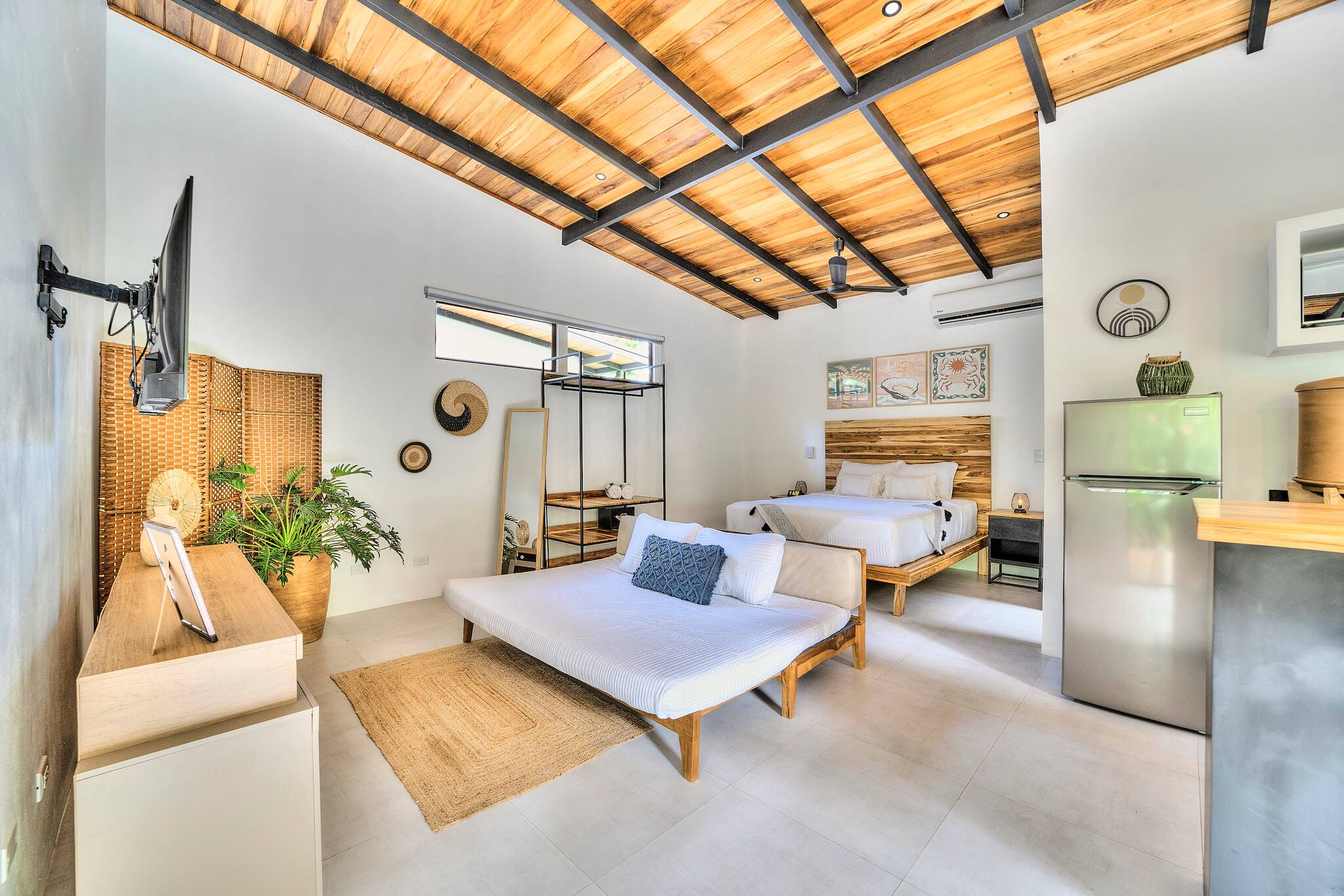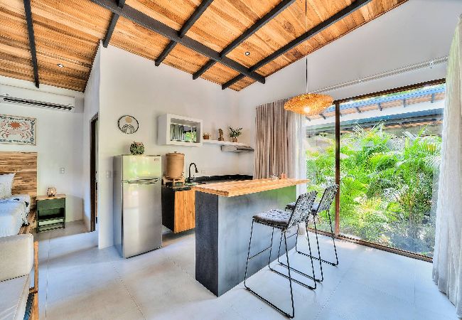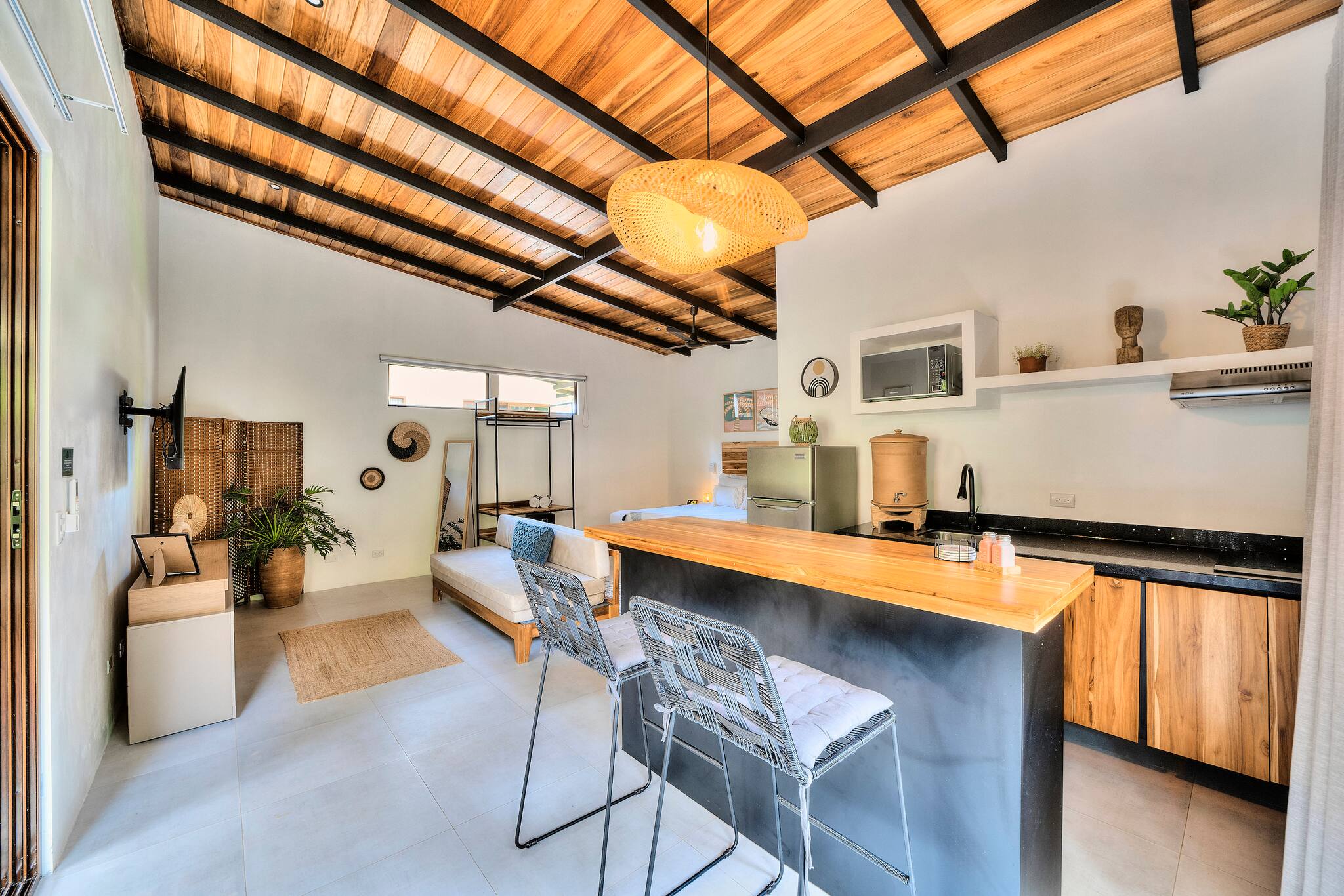 La villa en Puerto Viejo posee 1 habitaciones y capacidad para 4 personas. Alojamiento de 57 m² amueblado con gusto y moderno, con vistas al jardín y a la alberca. Se encuentra a 300 m de la playa de arena "Playa Negra", 1 km del supermercado "Super SK", 1 km de la estación de autobuses "Parada Estación de Policía", 2 km del restaurante "Restaurantes Puerto Viejo", 2 km de la ciudad "Centro de Puerto Viejo", 5 km del hospital "Clínica Dra. Rosa León Chang", 15 km del parque natural "Refugio Nacional Gandoca-Manzanillo", 55 km del aeropuerto "Aeropuerto Limón", 240 km del aeropuerto internacional "Aeropuerto Internacional Juan Santamaría" y está ubicado en una zona residencial y junto al mar.Dispone de jardín, mobiliario jardín, parcela vallada, terraza, plancha, caja fuerte, acceso internet (wifi), secadora, aire acondicionado, alberca comunitaria, estacionamiento en mismo edificio, 1 Televisión.La cocina, de inducción, está equipada con refrigerador, microondas, vajilla/cubertería, utensilios/cocina, cafetera, tostador, hervidor de agua y fogones.