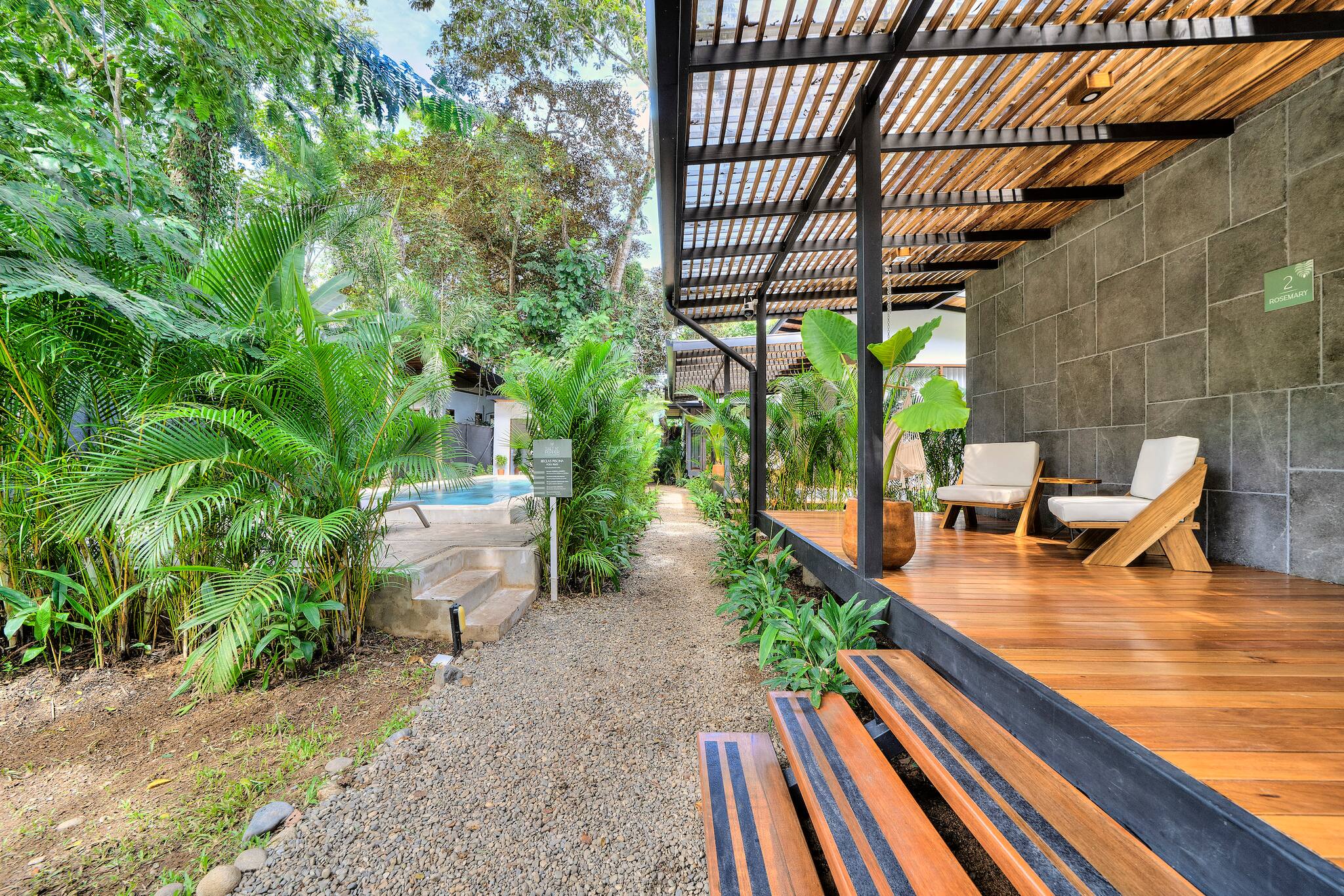 Alojamiento de 57 m² amueblado con gusto y moderno, con vistas al jardín y a la alberca.