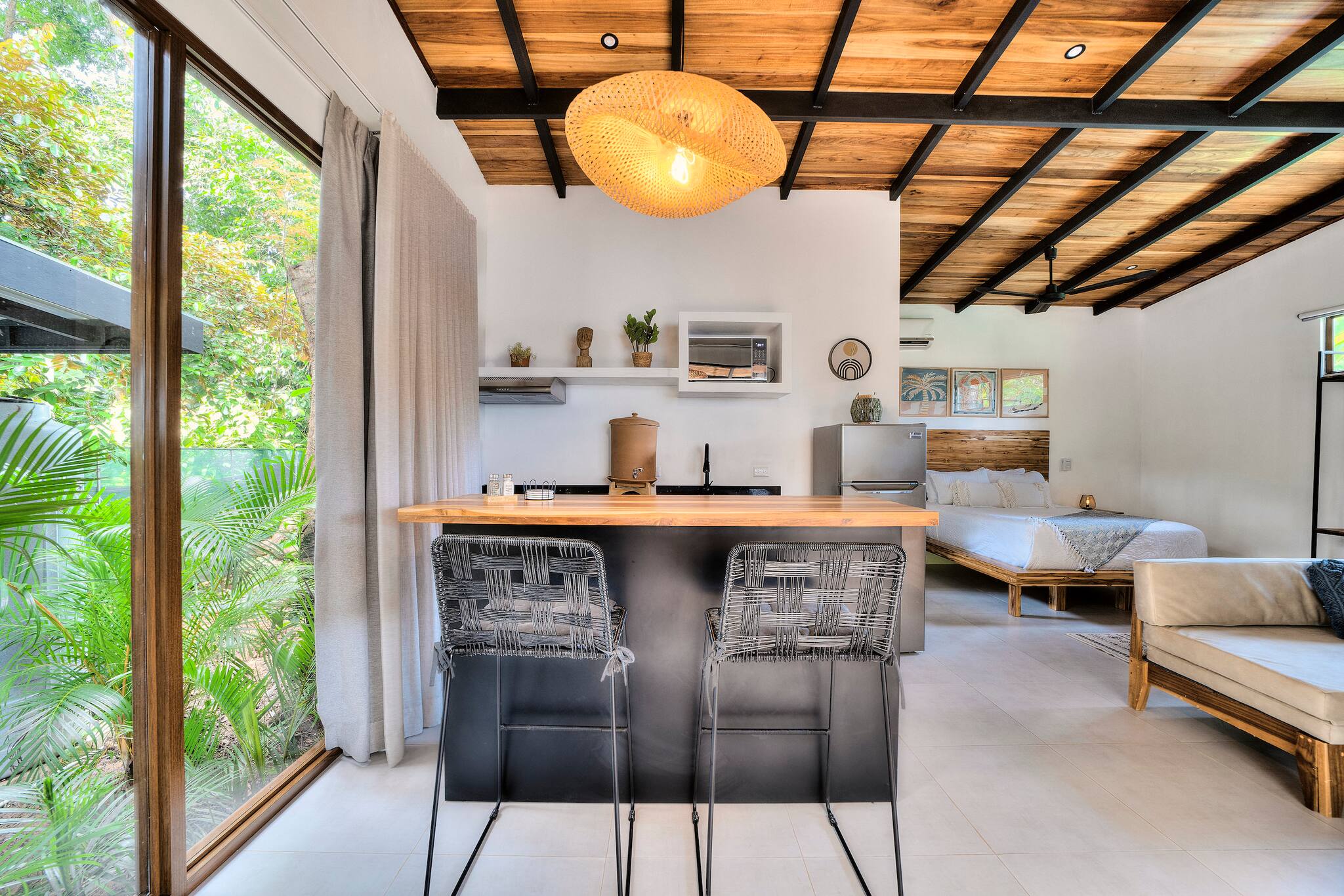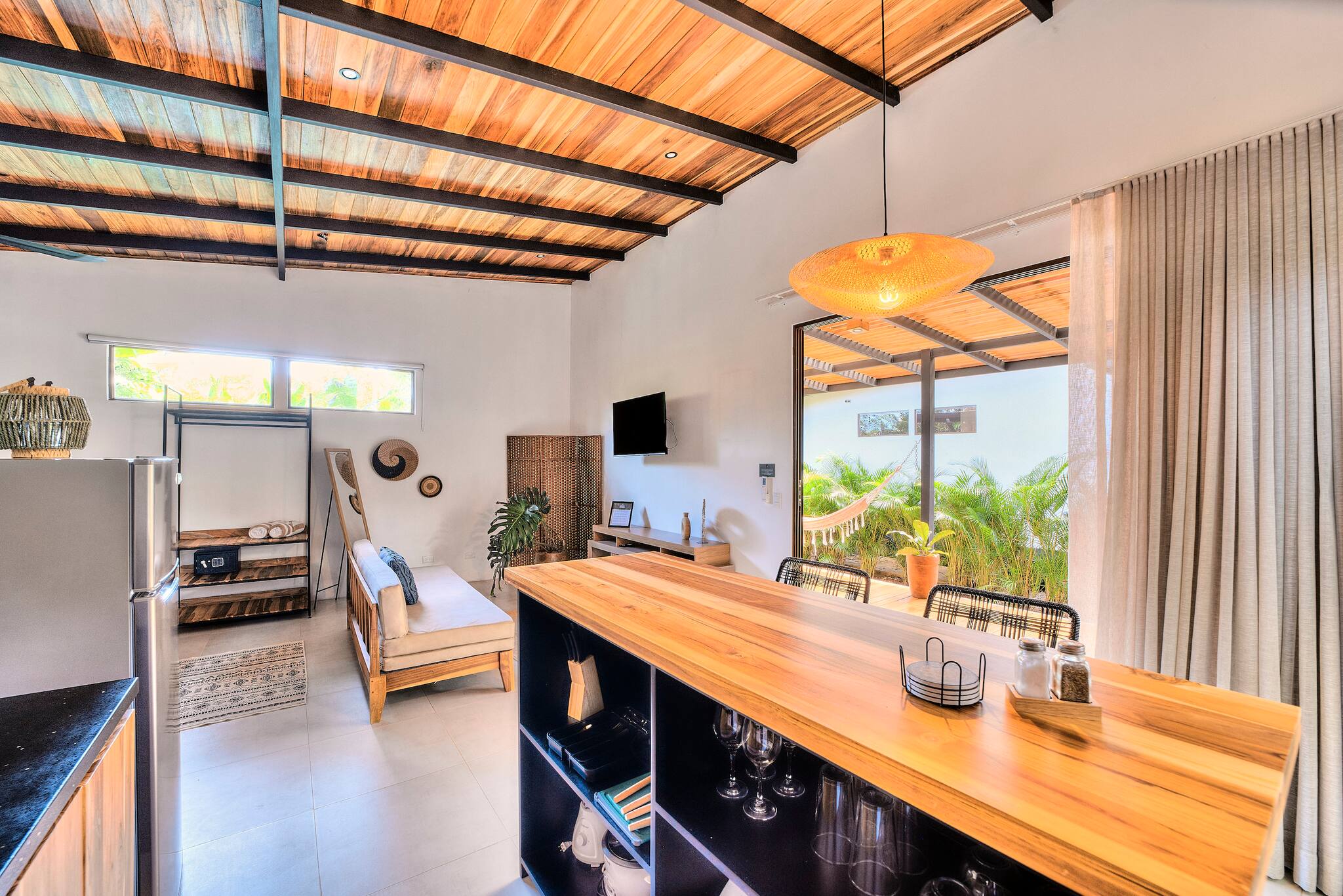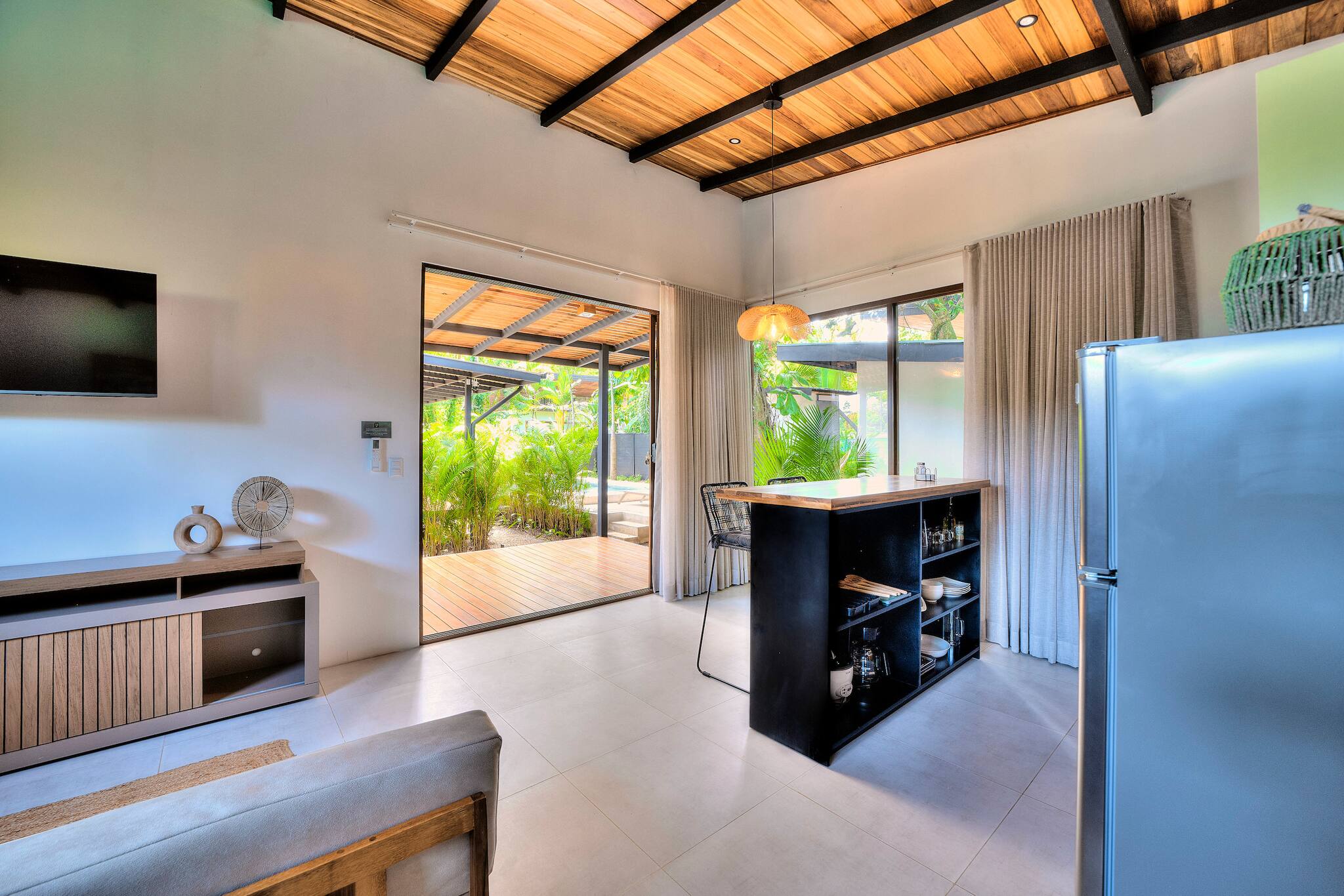 La villa en Puerto Viejo posee 1 habitaciones y capacidad para 4 personas. Alojamiento de 57 m² amueblado con gusto y moderno, con vistas al jardín y a la alberca. Se encuentra a 300 m de la playa de arena "Playa Negra", 1 km del supermercado "Super SK", 1 km de la estación de autobuses "Parada Estación de Policía", 2 km del restaurante "restaurantes Puerto Viejo", 2 km de la ciudad "Centro de Puerto Viejo", 5 km del hospital "Clínica Dra. Rosa León Chang", 15 km del parque natural "Refugio Nacional Gandoca-Manzanillo", 55 km del aeropuerto "Aeropuerto Limón", 240 km del aeropuerto internacional "Aeropuerto Internacional Juan Santamaría" y está ubicado en una zona residencial y junto al mar.Dispone de jardín, mobiliario jardín, parcela vallada, terraza, plancha, caja fuerte, acceso internet (wifi), secadora, aire acondicionado, alberca comunitaria, estacionamiento en mismo edificio, 1 Televisión.La cocina, de inducción, está equipada con refrigerador, microondas, vajilla/cubertería, utensilios/cocina, cafetera, tostador, hervidor de agua y fogones.