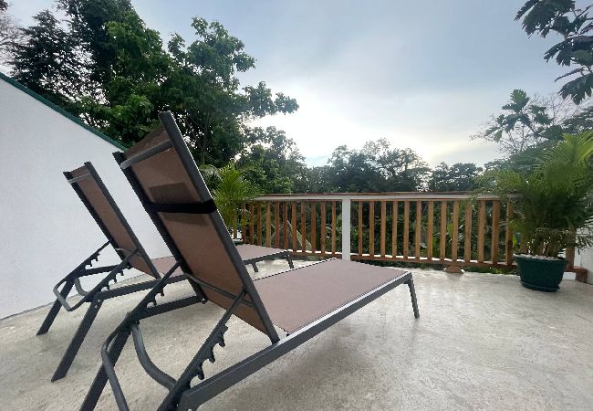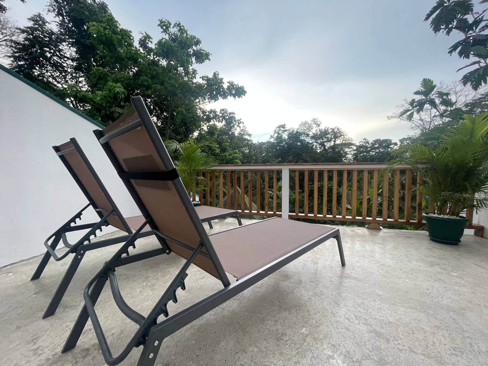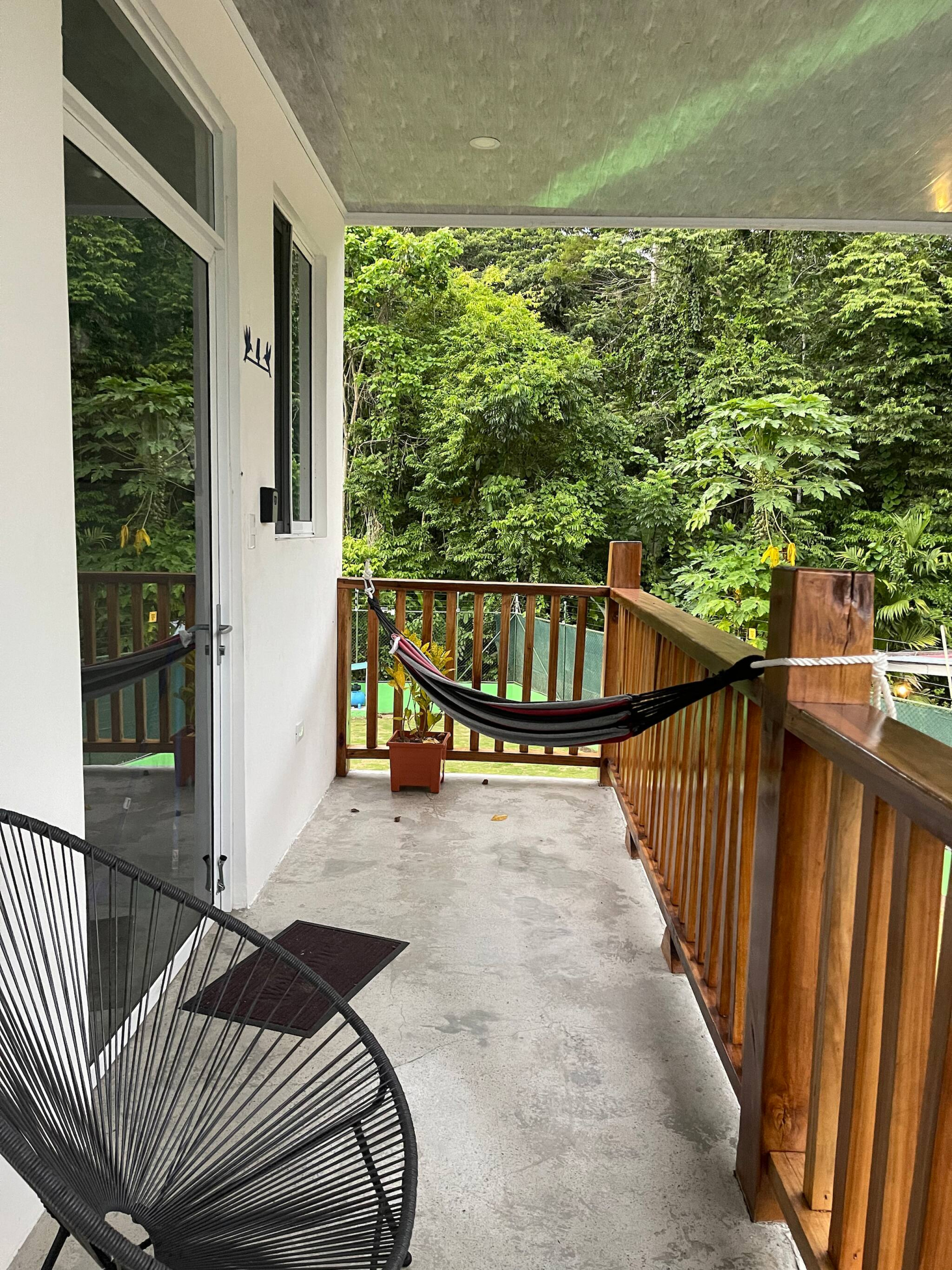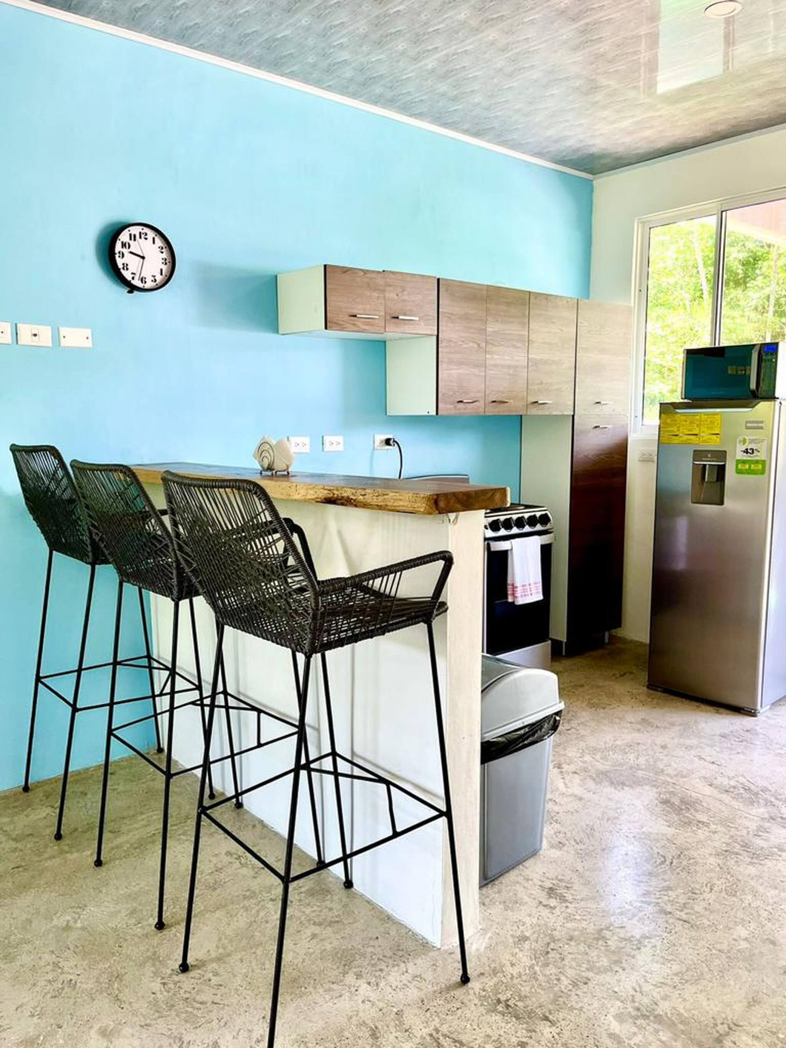 The apartment also offers a full bathroom with hot water, a fully equipped kitchen with breakfast bar, a laundry area with utility sink, and balconies at the front and back to enjoy the outdoors. Long-term stays are welcome, making it an excellent option for those looking to work remotely or simply settle in for an extended stay in this little corner of paradise.