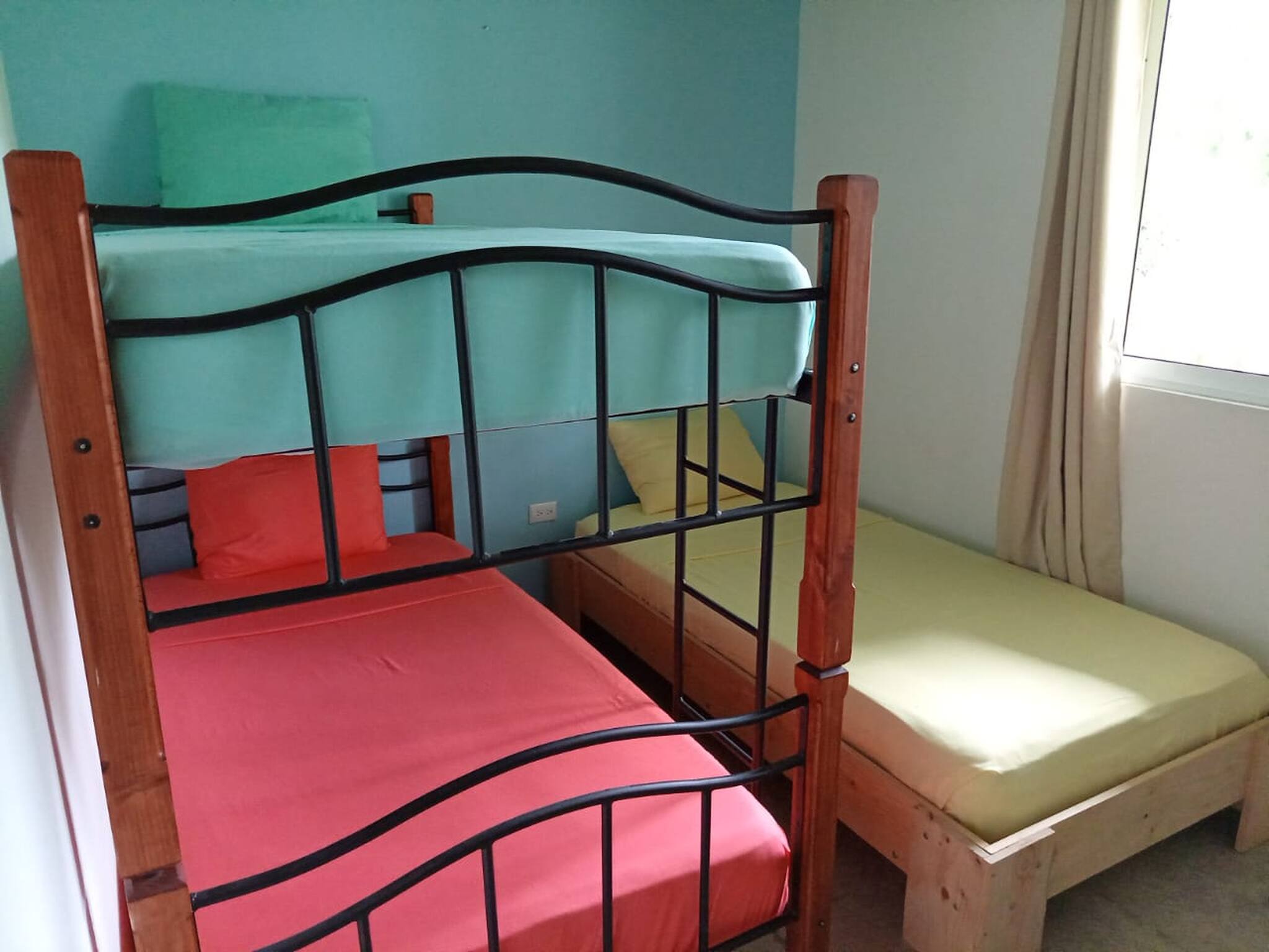 Apartment Abeto 4 is located on the second floor and accommodates up to six guests. It features two bedrooms: one with a double bed and another with a single bed plus a bunk bed, both equipped with ceiling fans. The living room includes a single sofa bed and air conditioning, along with a Smart TV and high-speed Starlink satellite internet.