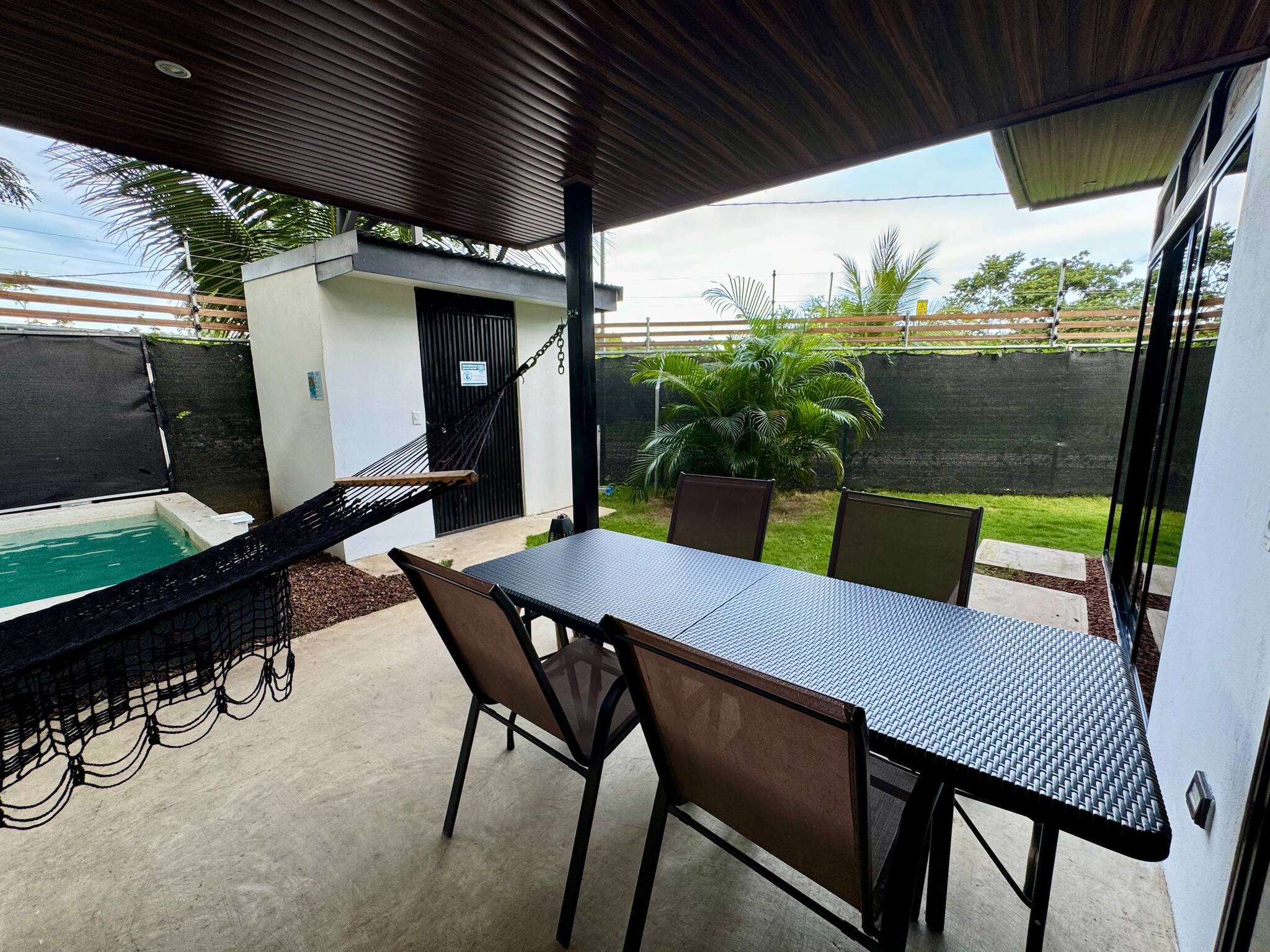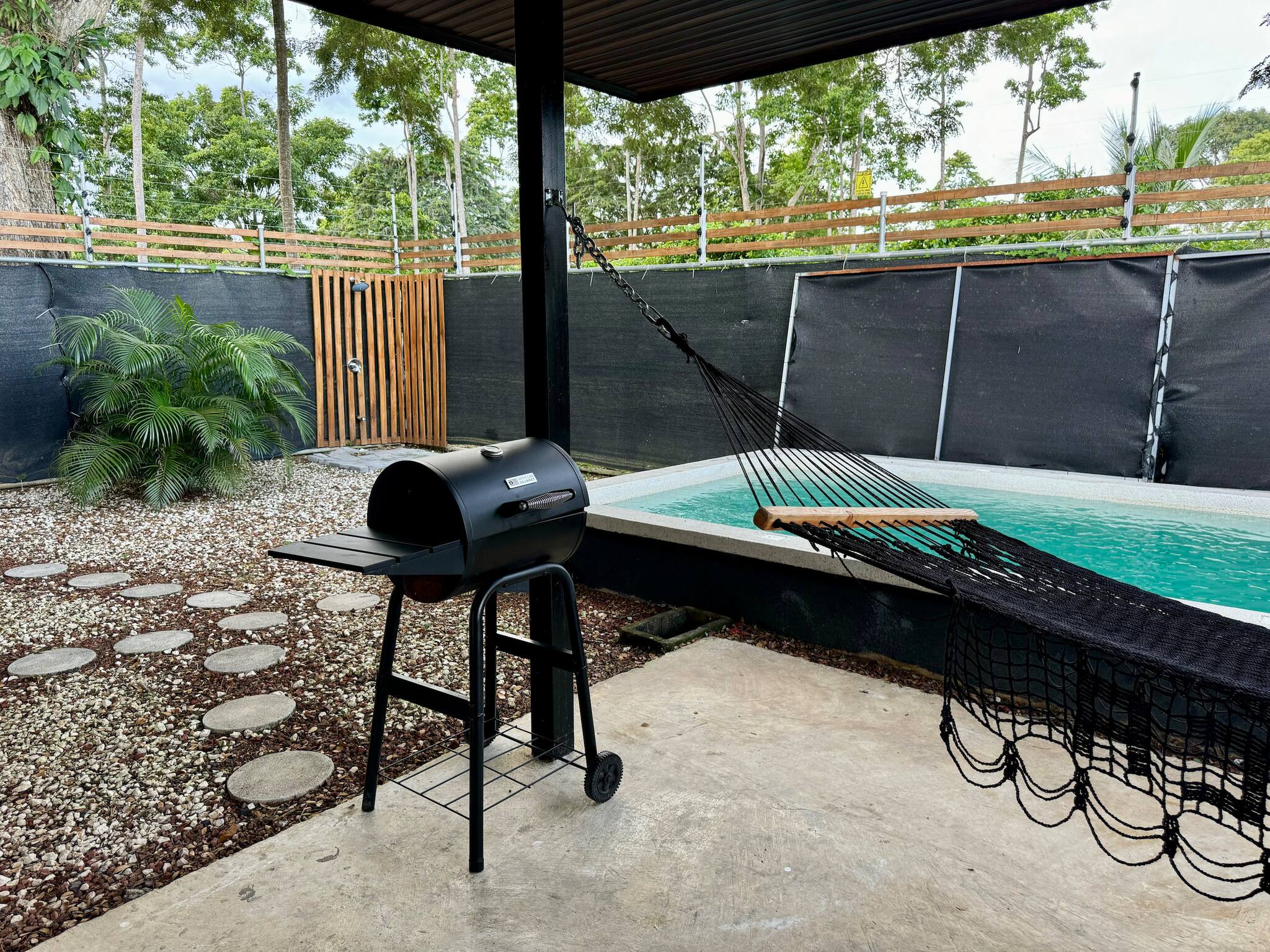 The house accommodates up to six guests and features two air-conditioned bedrooms with double beds, plus a double sofa bed in the common area. It includes two full bathrooms, a fully equipped kitchen, Smart TV with IPTV, high-speed Starlink internet, a terrace with hammock, barbecue, private pool, and parking for two vehicles. It’s also pet friendly—perfect for guests who want to share the adventure with their furry companions in a safe and natural environment.