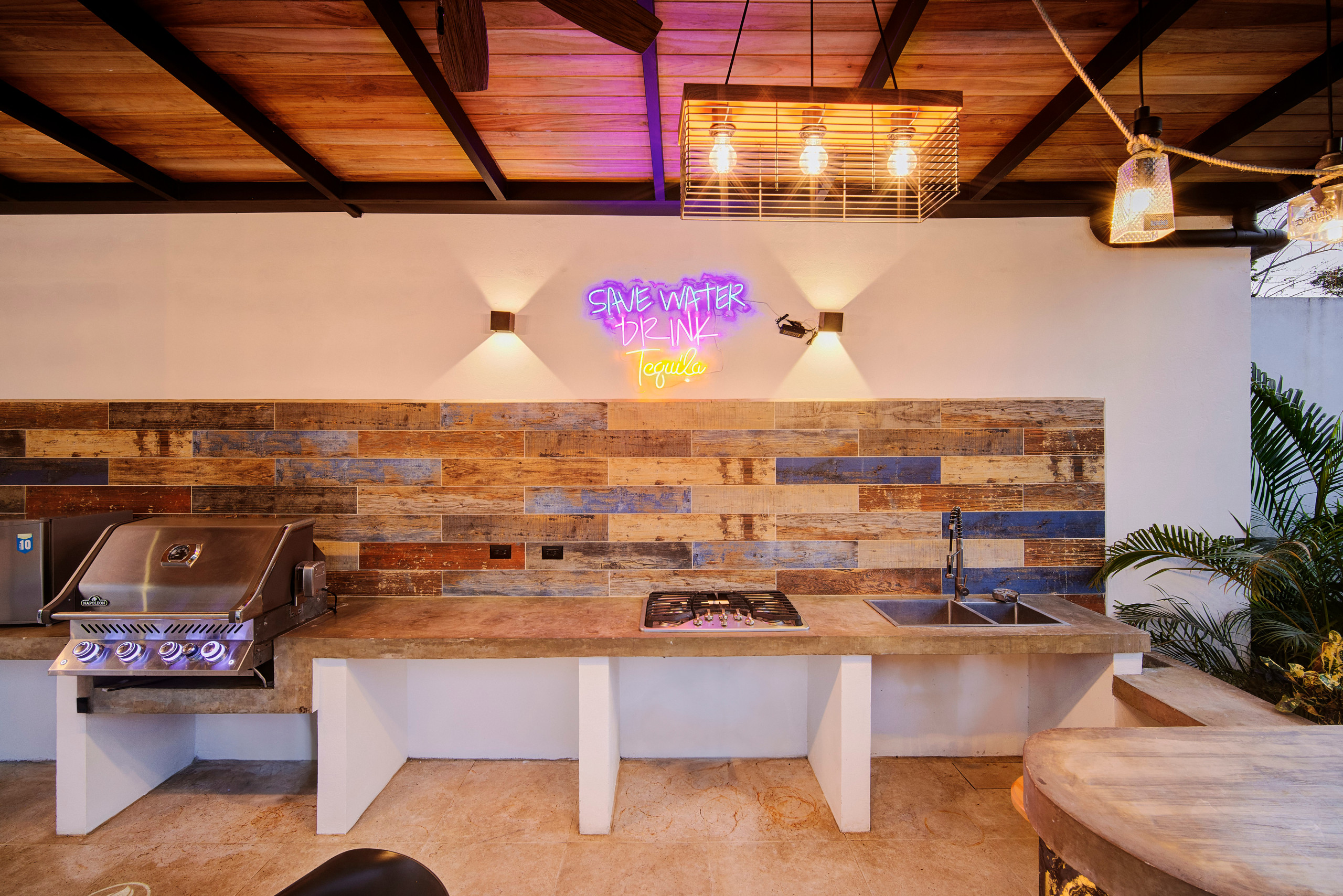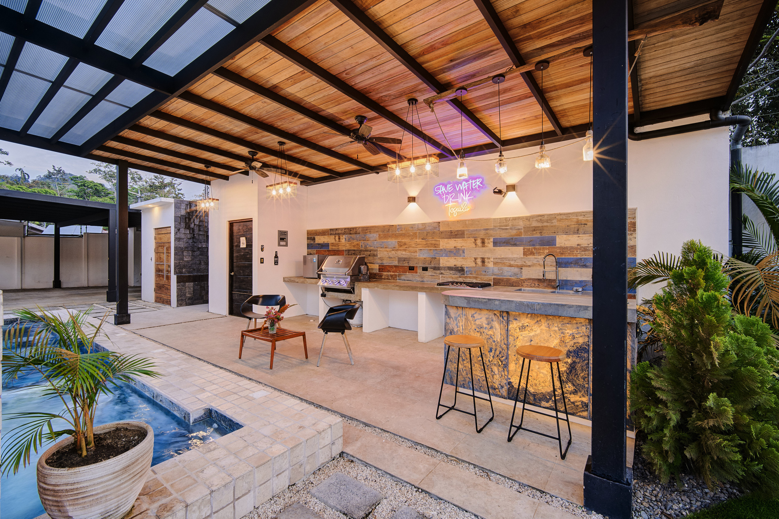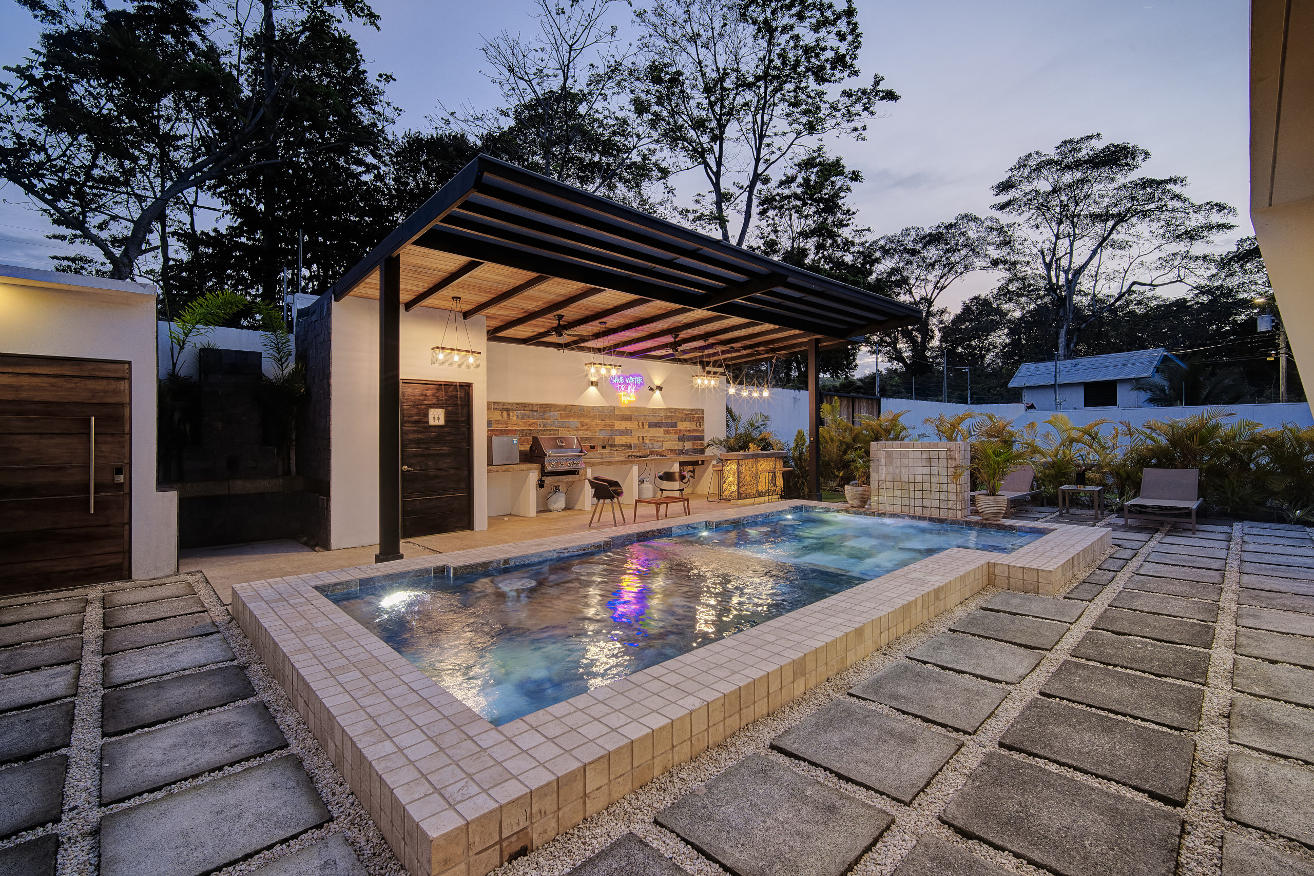 With an incredible heated pool with waterfall that is located right next to our spectacular propane BBQ area and outdoor bar so you can enjoy the beautiful evenings in Puerto Viejo.