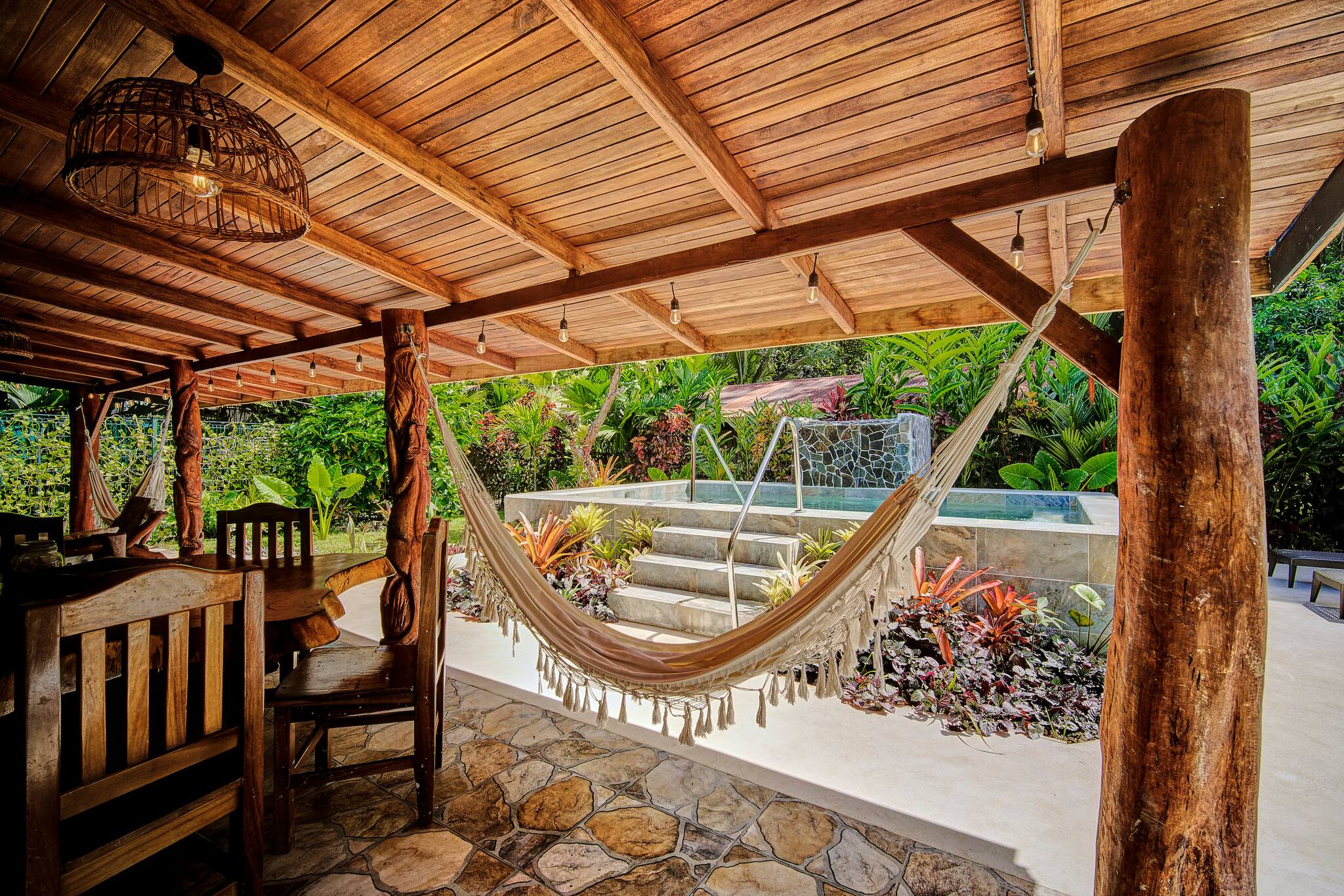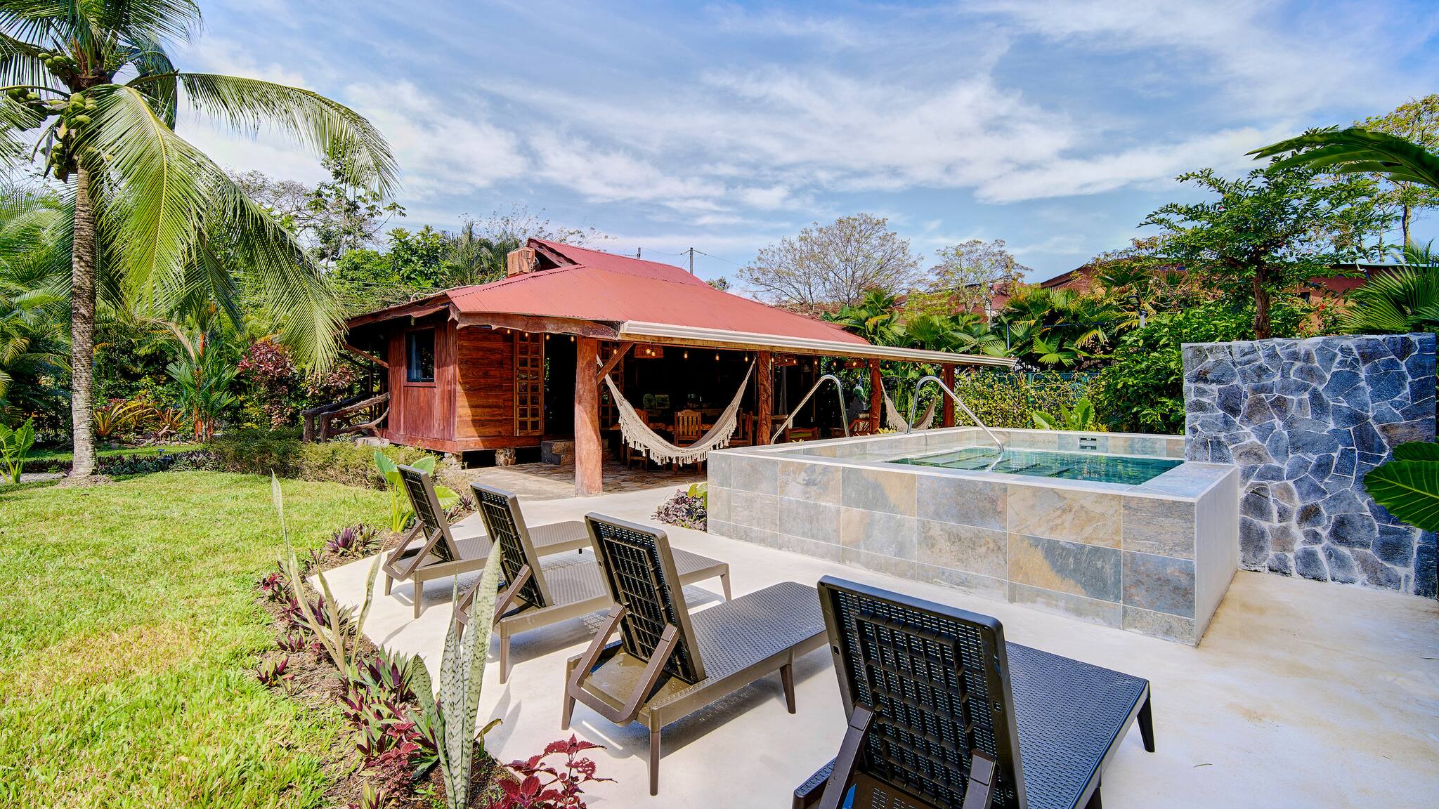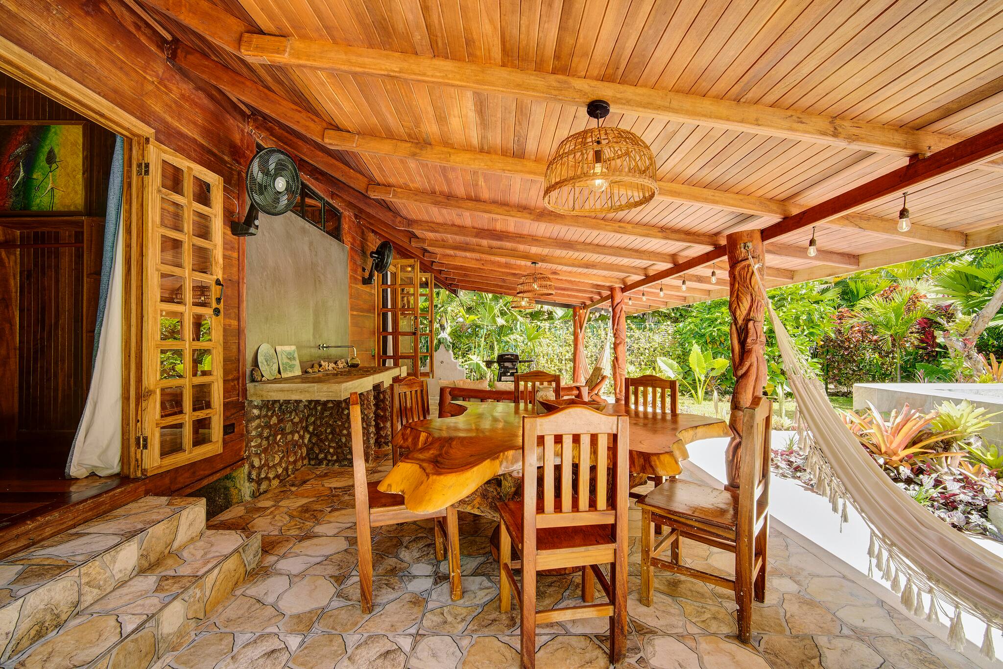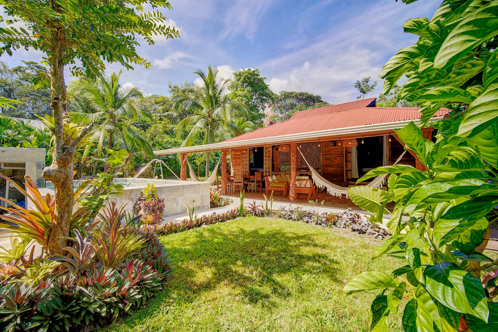 Just 150 meters from the beach and only 5 minutes from downtown Puerto Viejo, Casa Franke offers a rustic Caribbean experience full of soul and charm. Surrounded by tropical gardens and the soothing sounds of the jungle, this cozy home features handcrafted wooden details and spaces made for slow living. Its natural stone pool with a small waterfall blends beautifully with the landscape, creating a serene and refreshing setting. Every corner reflects local artistry, nature, and authenticity—perfect for travelers who appreciate simplicity and connection.