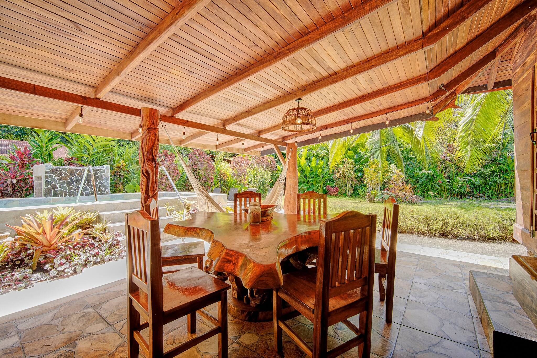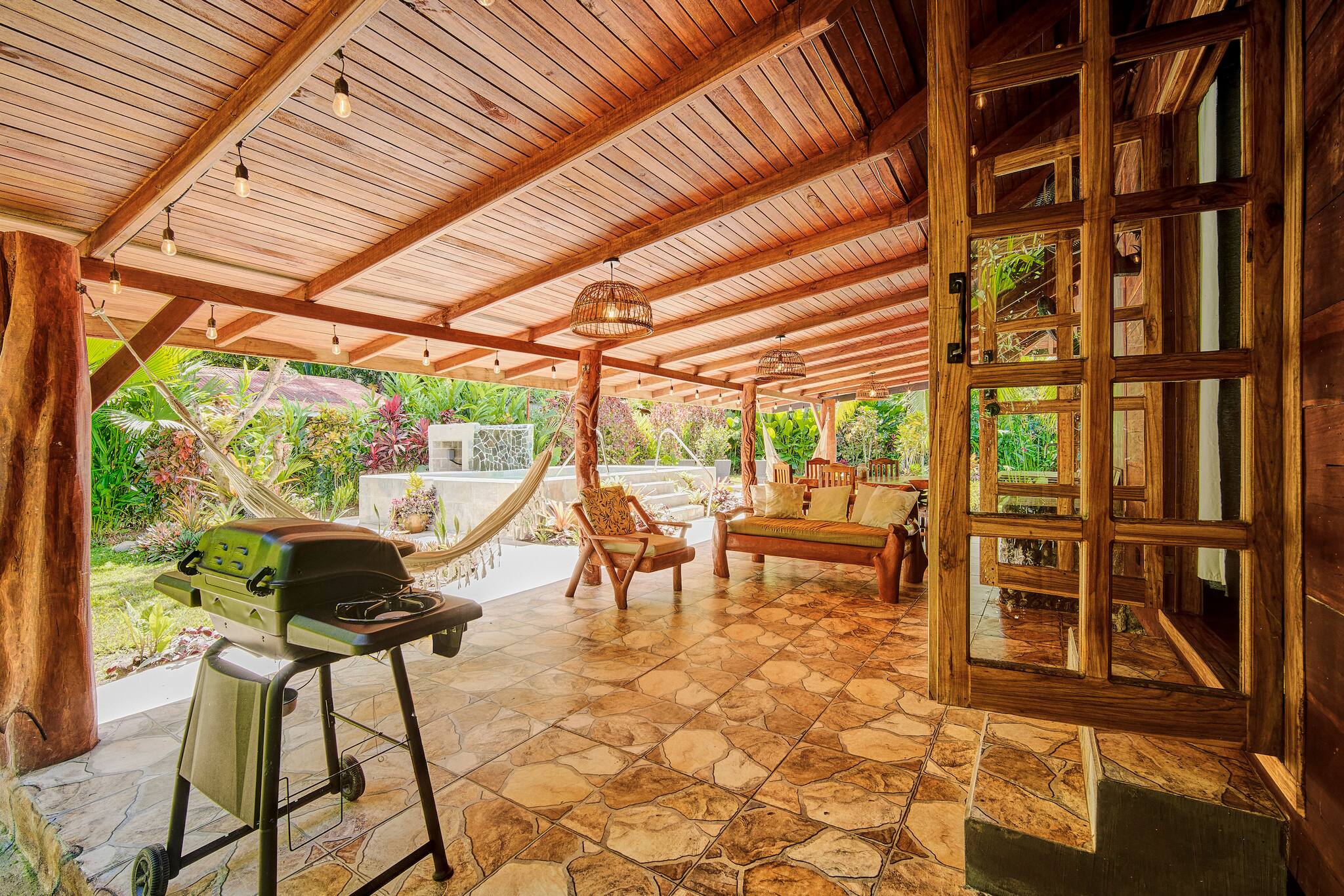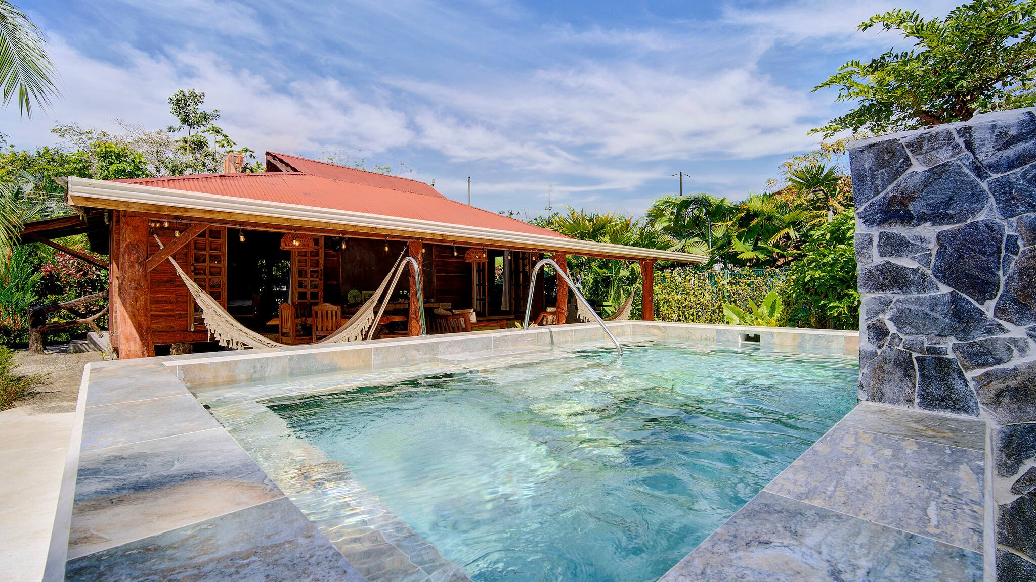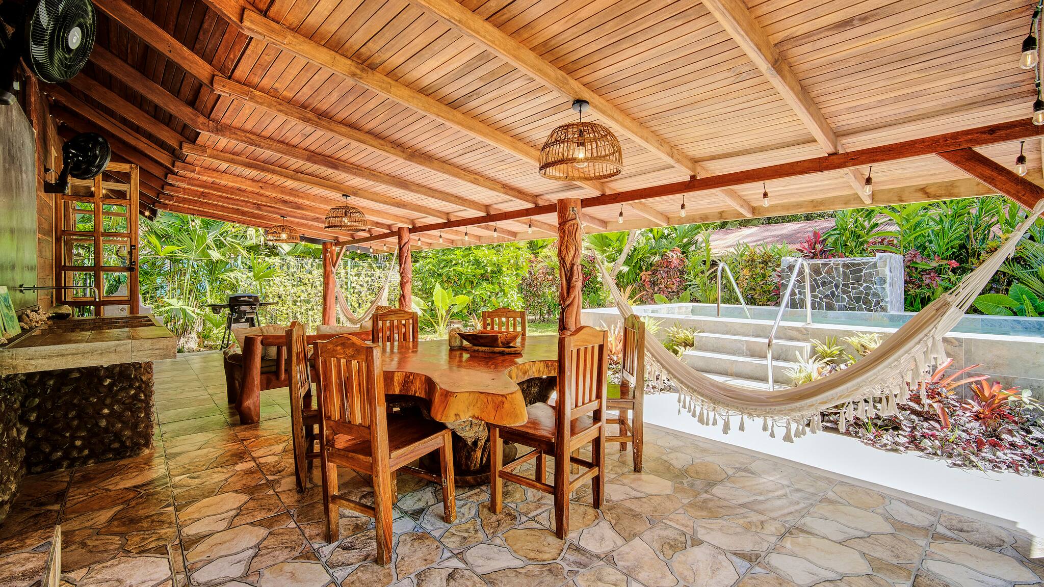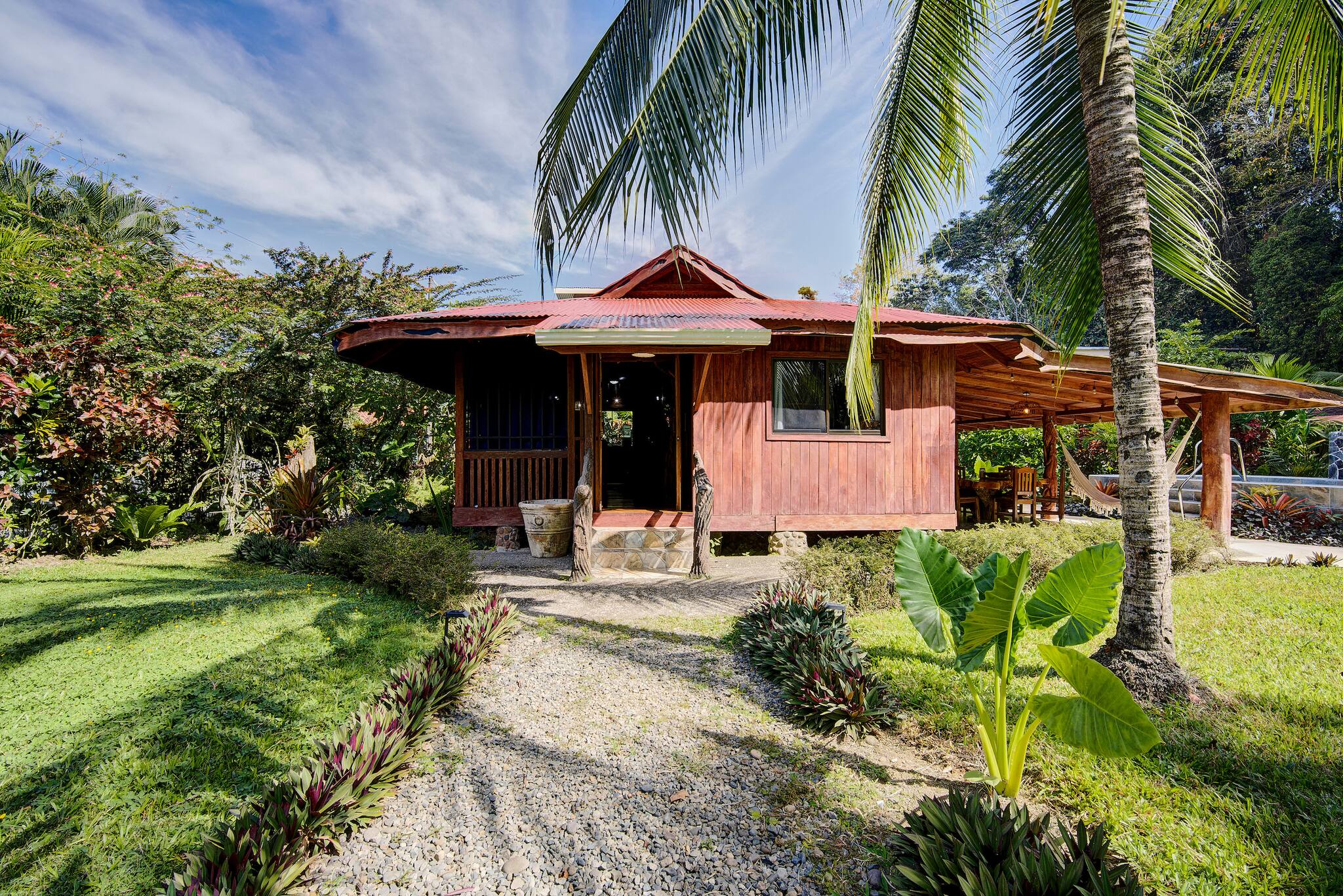 Just 150 meters from the beach and only 5 minutes from downtown Puerto Viejo, Casa Franke offers a rustic Caribbean experience full of soul and charm. Surrounded by tropical gardens and the soothing sounds of the jungle, this cozy home features handcrafted wooden details and spaces made for slow living. Its natural stone pool with a small waterfall blends beautifully with the landscape, creating a serene and refreshing setting. Every corner reflects local artistry, nature, and authenticity—perfect for travelers who appreciate simplicity and connection.