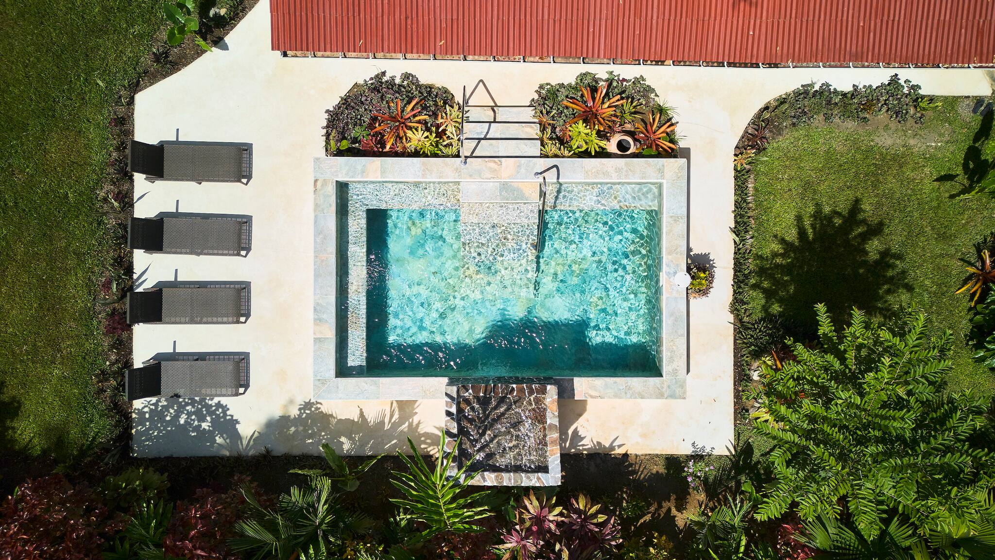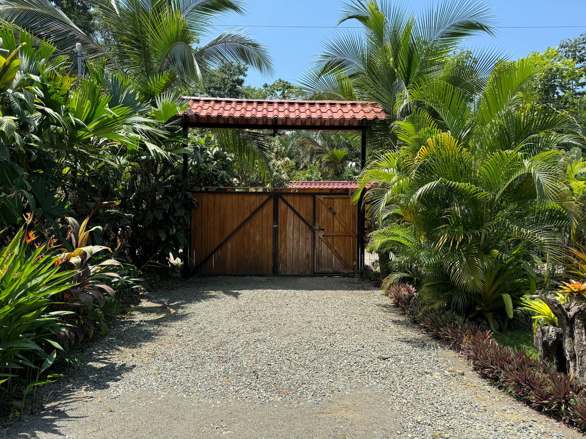 Outside, a beautiful pool overlooks the lush gardens—perfect for cooling off after a day at the beach. The property also offers private parking for up to three vehicles and an electric gate for added security.