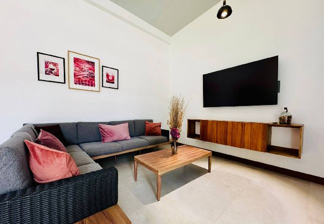 This cozy townhouse-style home features an open-concept social area and two air-conditioned bedrooms, each with its own private bathroom. The master bedroom offers a comfortable king-size bed, while the second bedroom includes a double bed and a single bunk bed—ideal for families or small groups.