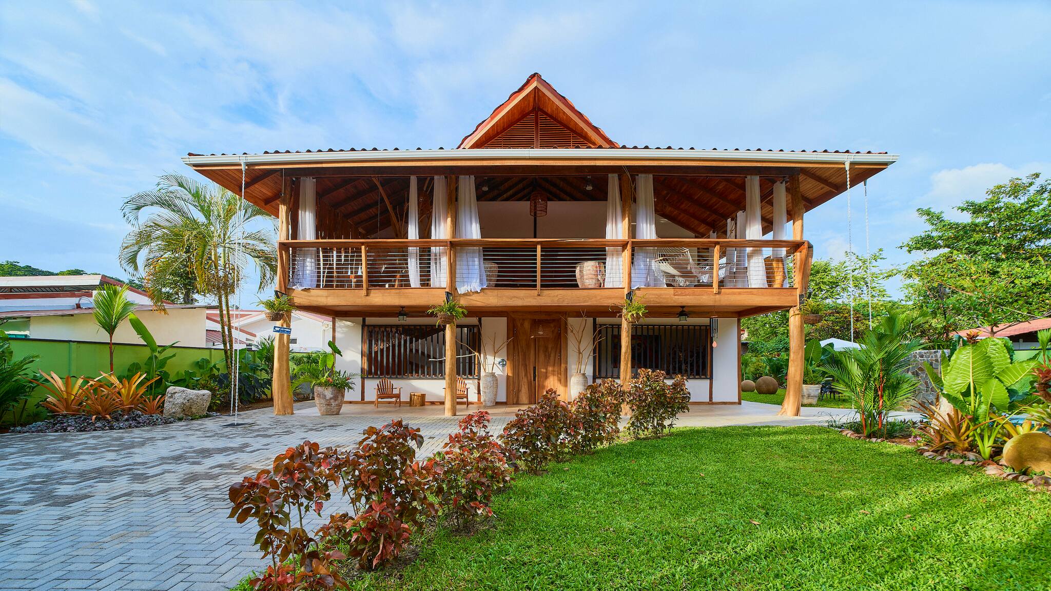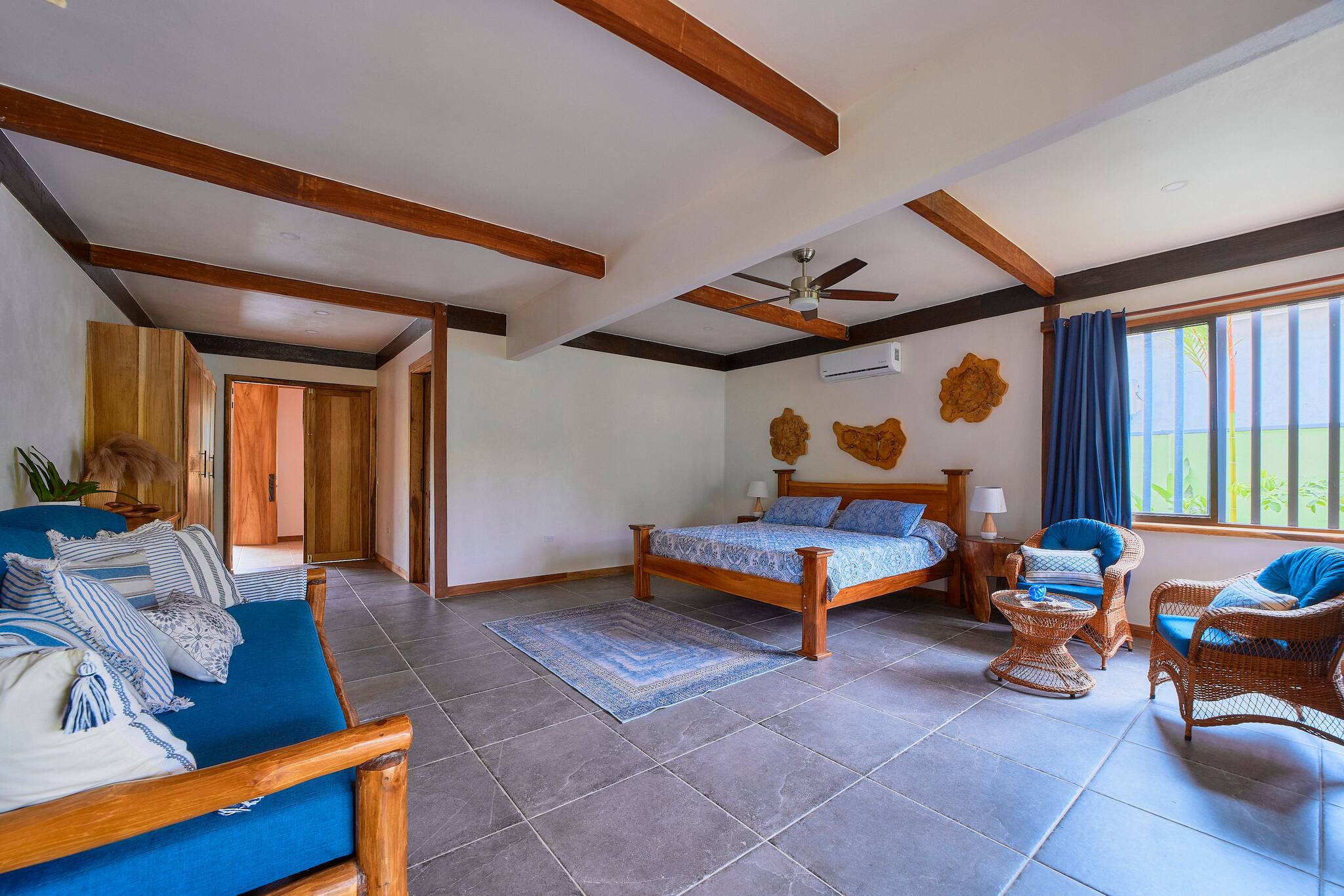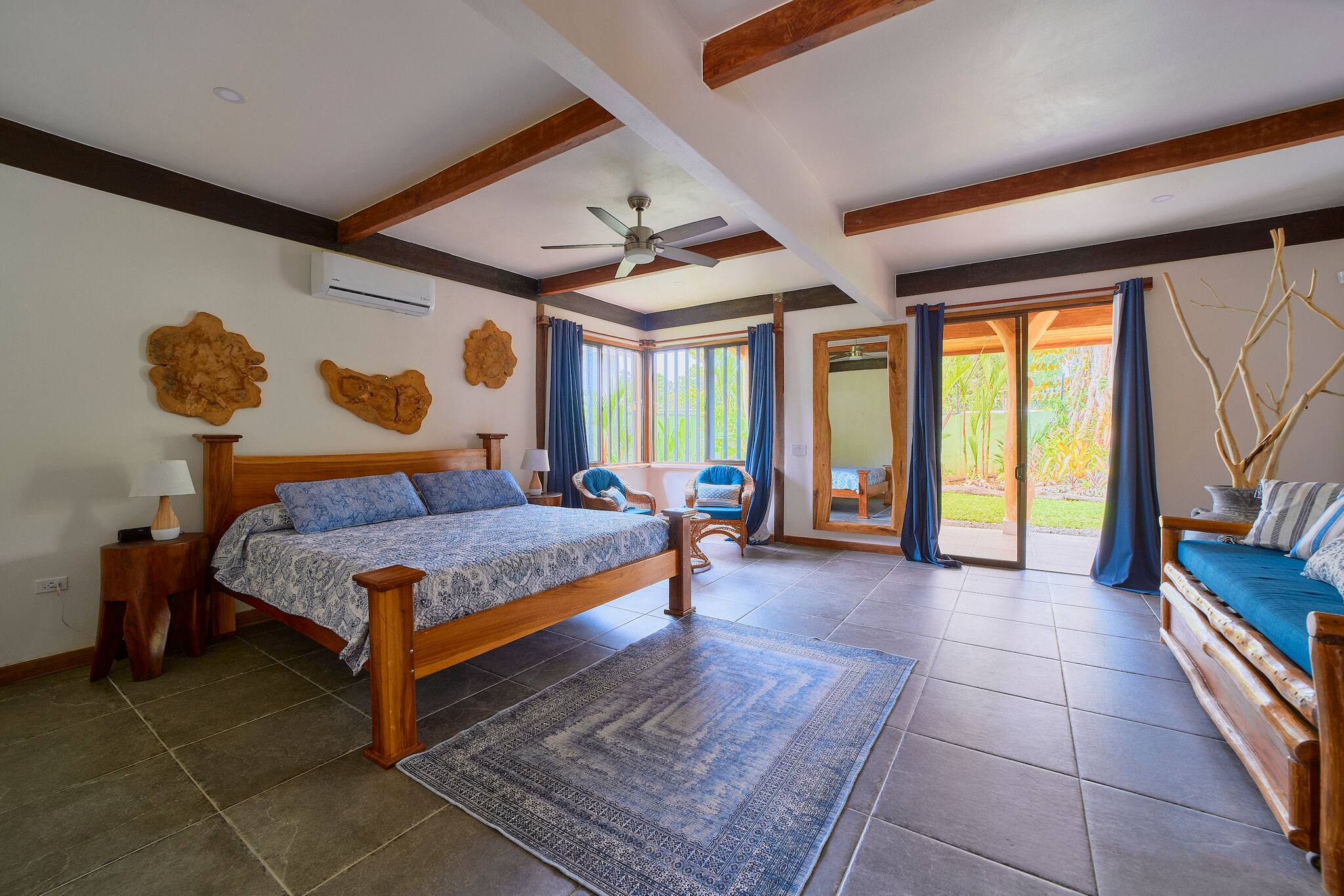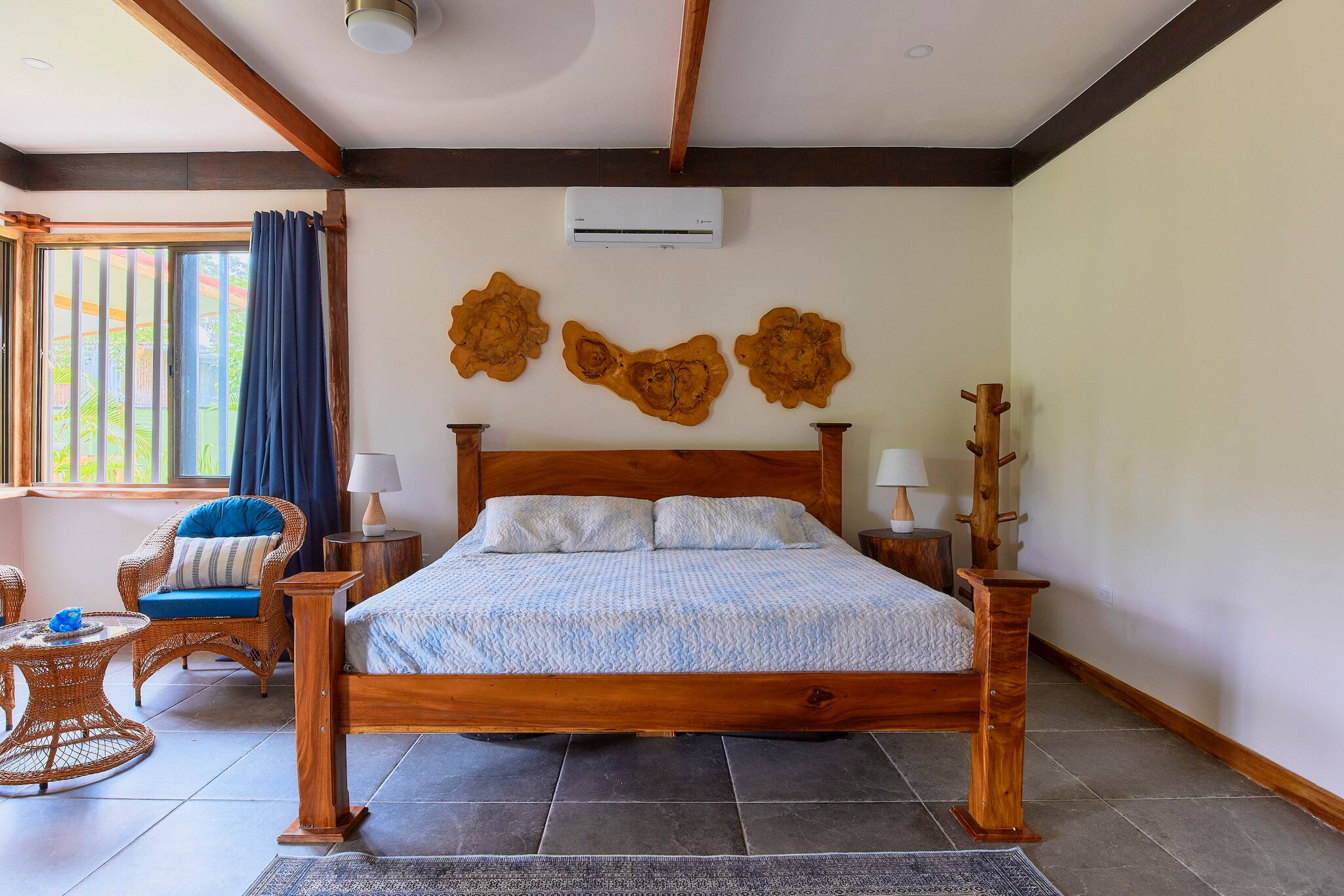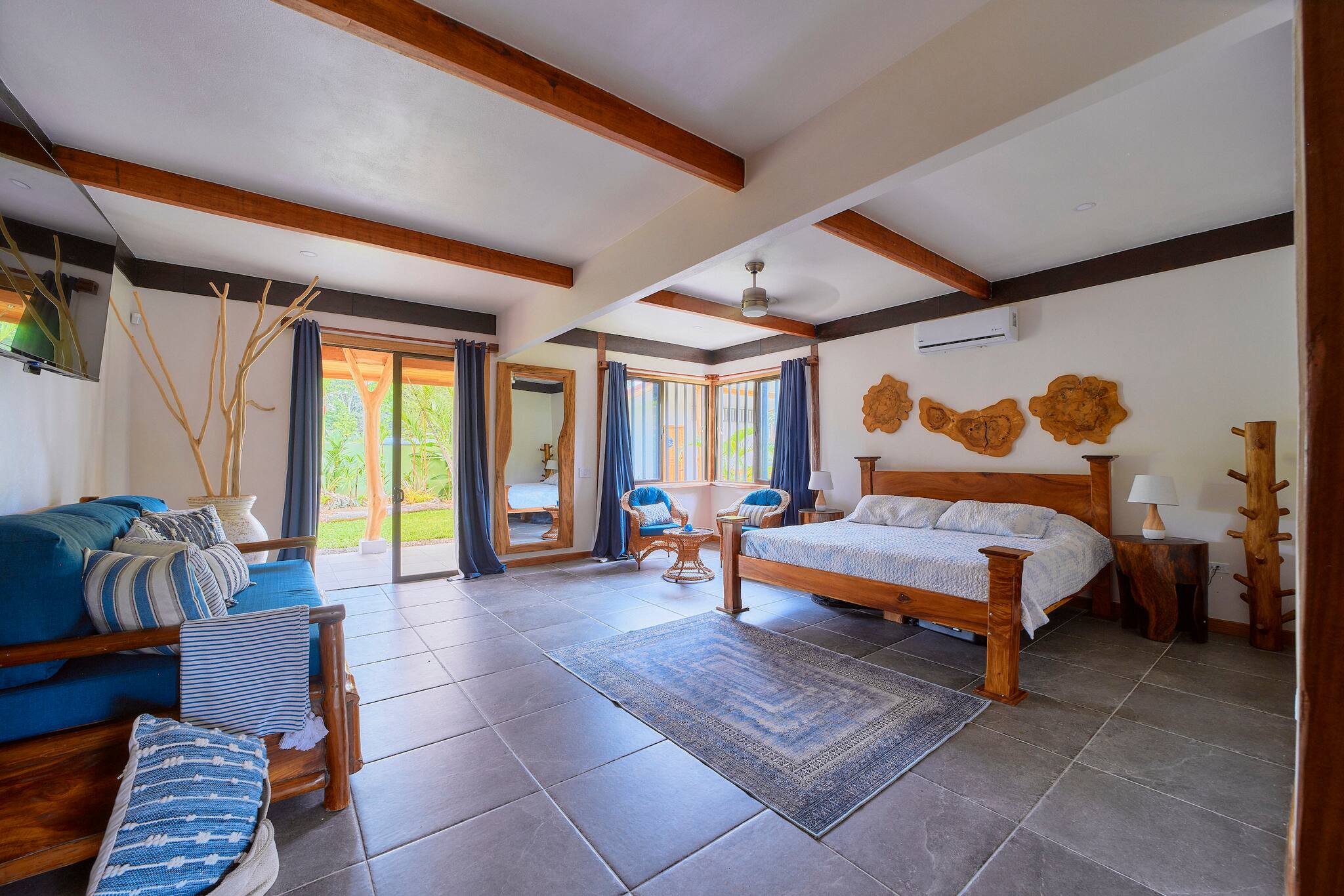 The home accommodates up to six guests and features two spacious master suites on the ground floor—each with a California king bed, an individual sofa bed, air conditioning, Smart TV, and a private luxury bathroom with rainfall shower. Both rooms open to a peaceful back patio with hammocks. Upstairs, you'll find an open living space with a chef-designed kitchen, oversized dining table, lounge area, a guest half-bath, and stunning woodwork throughout. The property also includes a gas BBQ, high-speed internet, parking for two vehicles, and welcomes long-term stays. Casa Masha is more than a vacation rental—it’s a living work of art that embodies the spirit of Costa Rica.