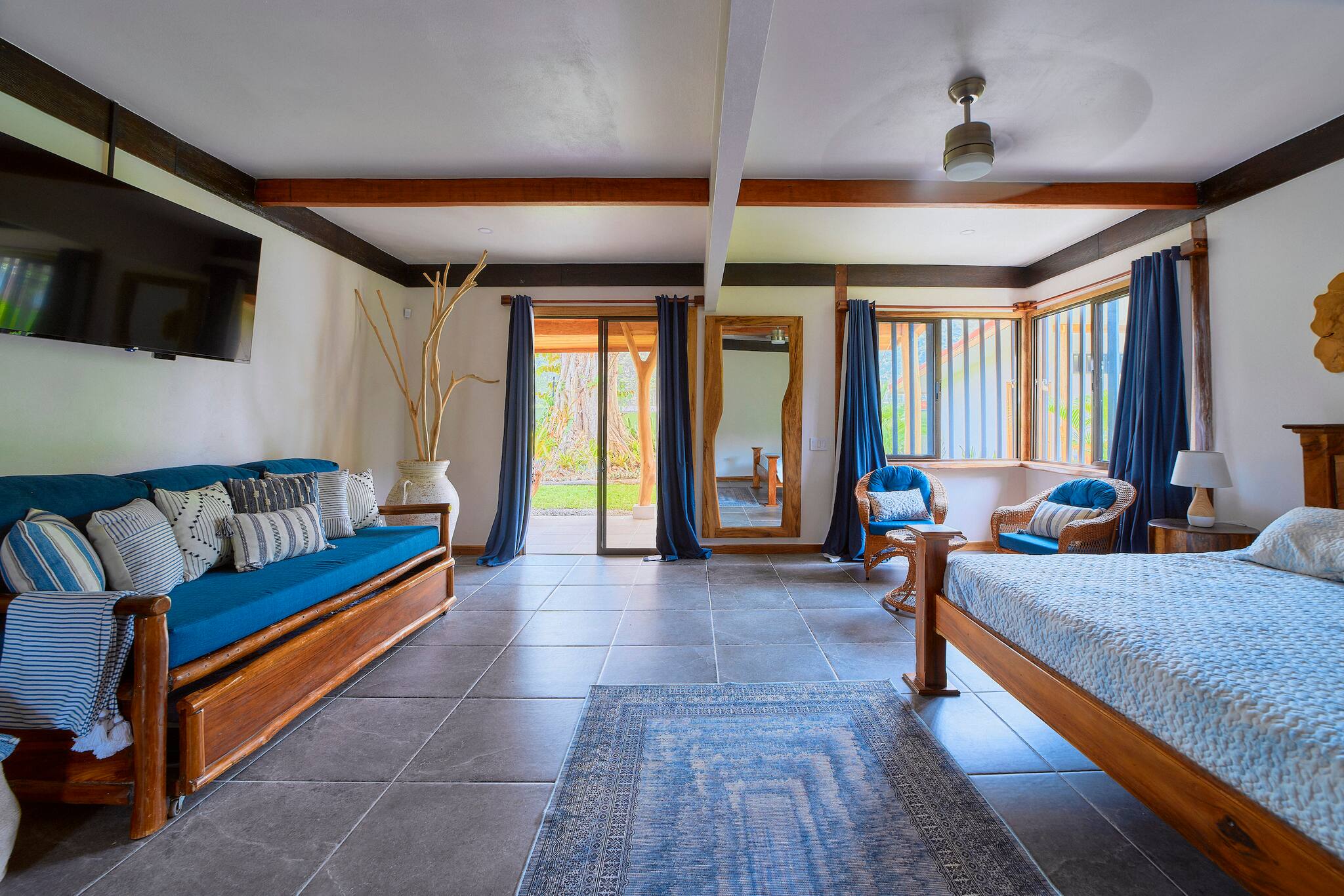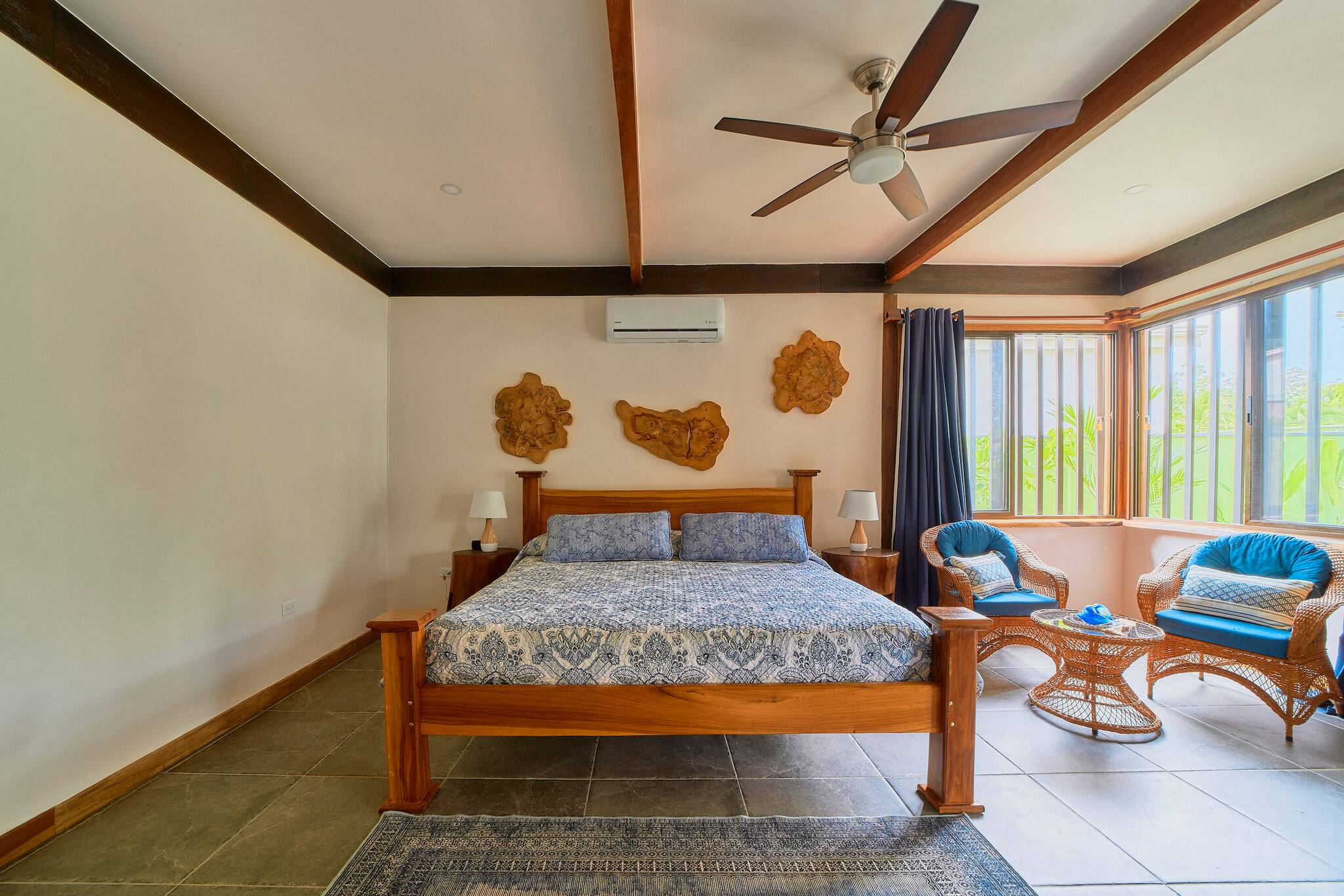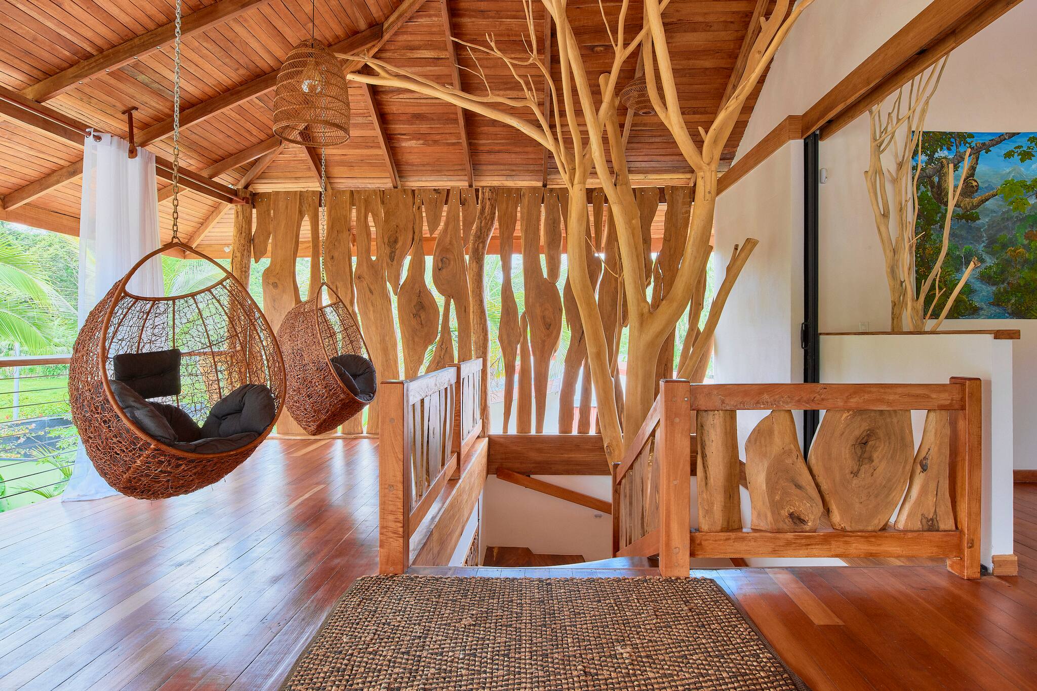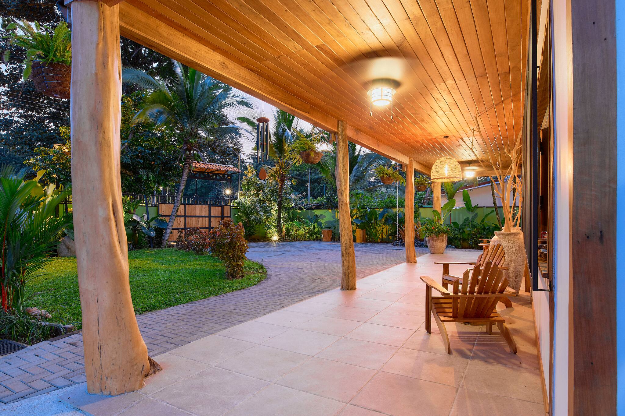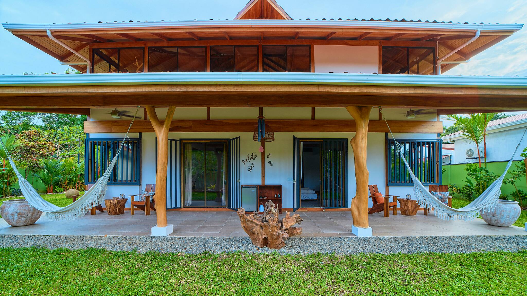 The home accommodates up to six guests and features two spacious master suites on the ground floor—each with a California king bed, an individual sofa bed, air conditioning, Smart TV, and a private luxury bathroom with rainfall shower. Both rooms open to a peaceful back patio with hammocks. Upstairs, you'll find an open living space with a chef-designed kitchen, oversized dining table, lounge area, a guest half-bath, and stunning woodwork throughout. The property also includes a gas BBQ, high-speed internet, parking for two vehicles, and welcomes long-term stays. Casa Masha is more than a vacation rental—it’s a living work of art that embodies the spirit of Costa Rica.