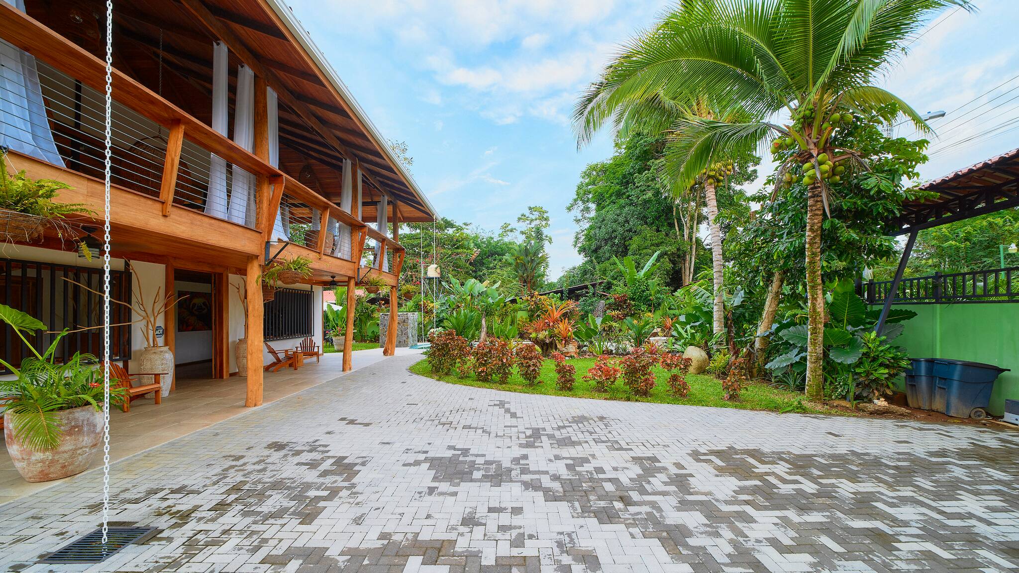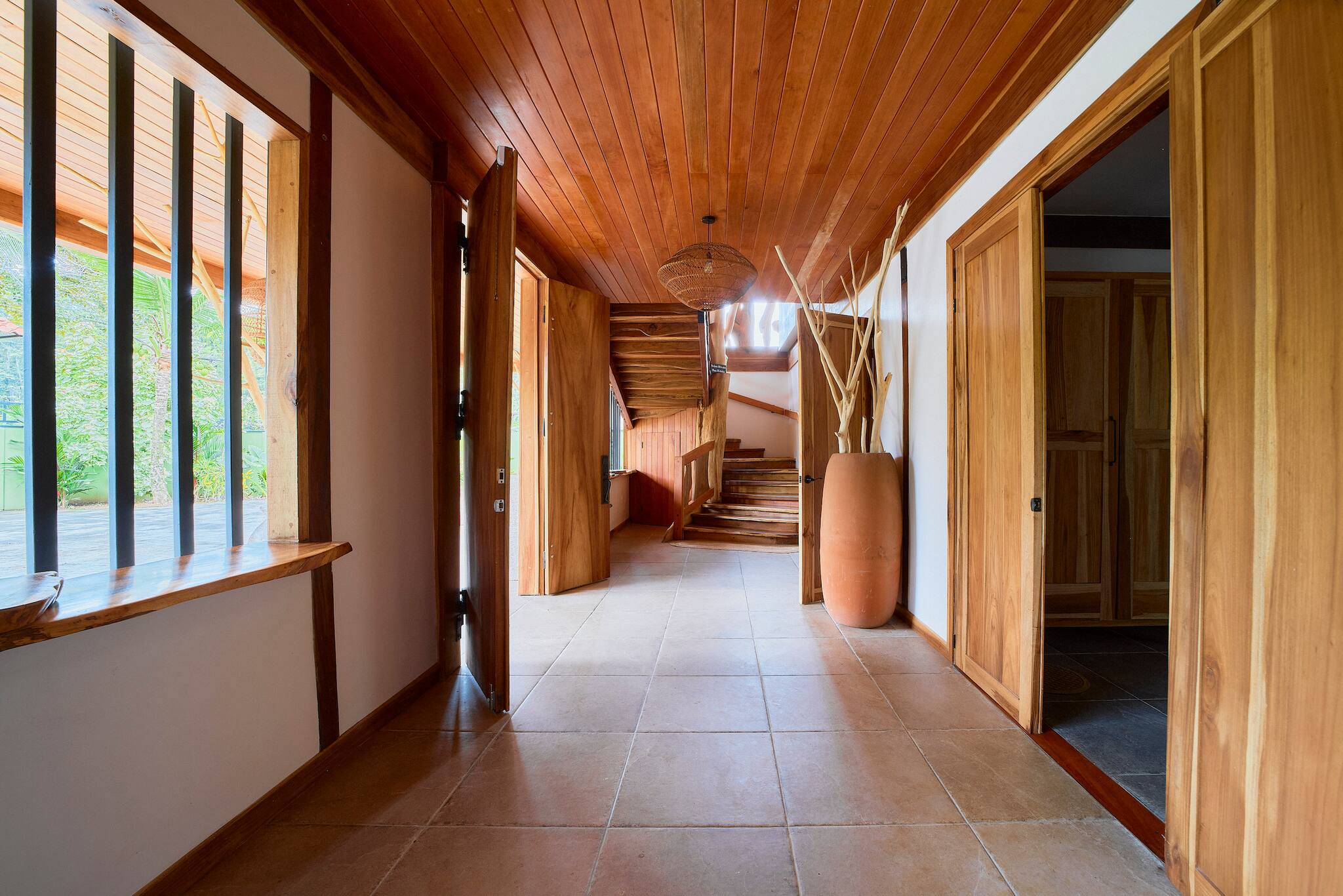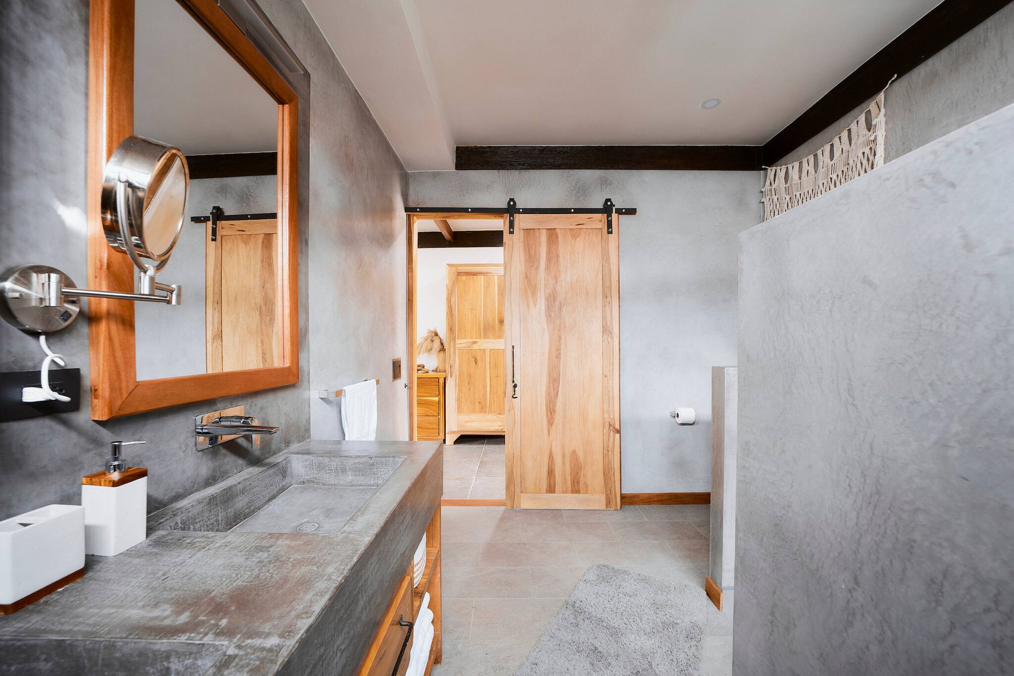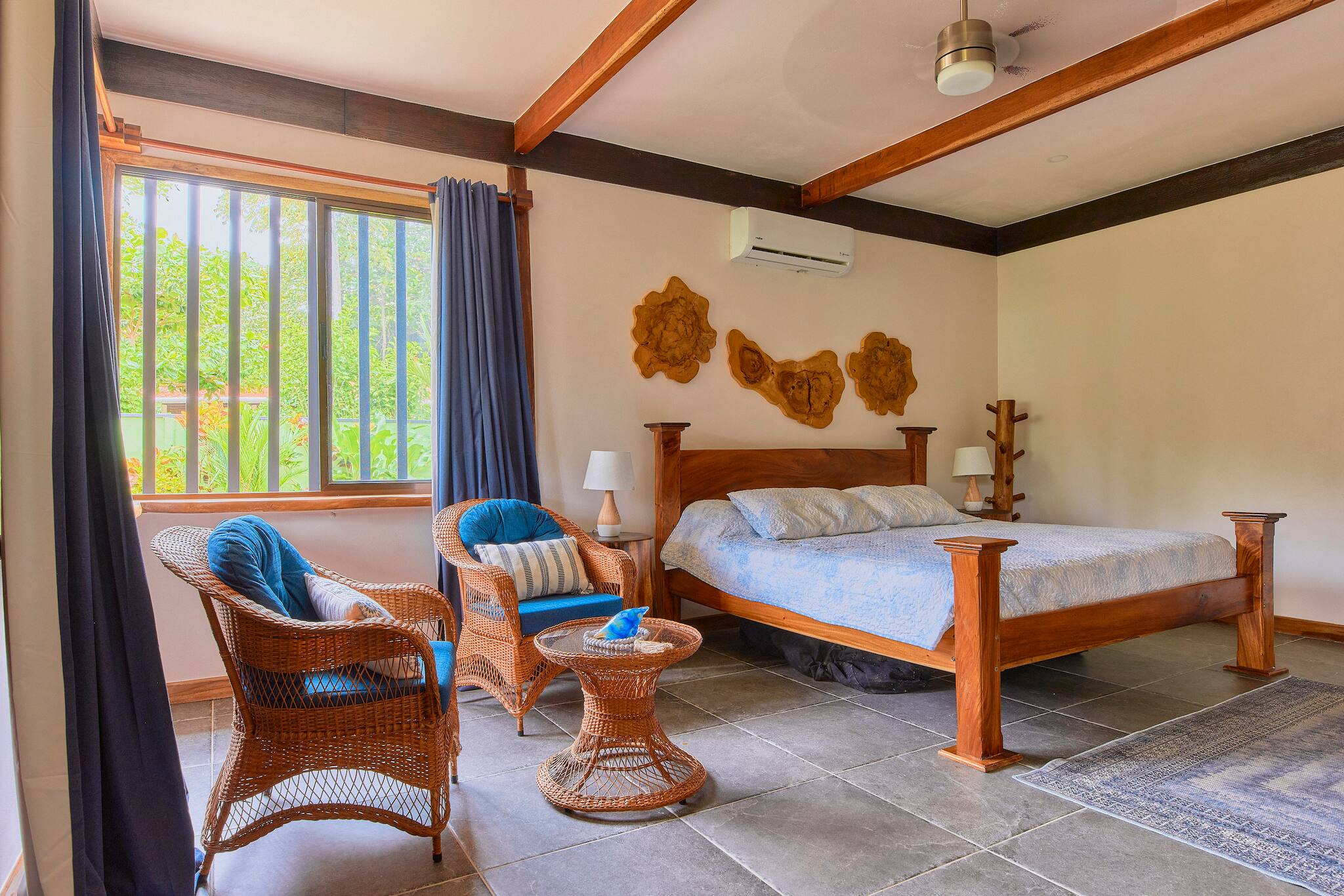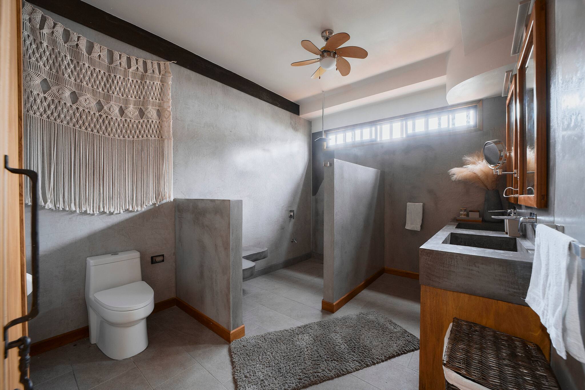 The home accommodates up to six guests and features two spacious master suites on the ground floor—each with a California king bed, an individual sofa bed, air conditioning, Smart TV, and a private luxury bathroom with rainfall shower. Both rooms open to a peaceful back patio with hammocks. Upstairs, you'll find an open living space with a chef-designed kitchen, oversized dining table, lounge area, a guest half-bath, and stunning woodwork throughout. The property also includes a gas BBQ, high-speed internet, parking for two vehicles, and welcomes long-term stays. Casa Masha is more than a vacation rental—it’s a living work of art that embodies the spirit of Costa Rica.