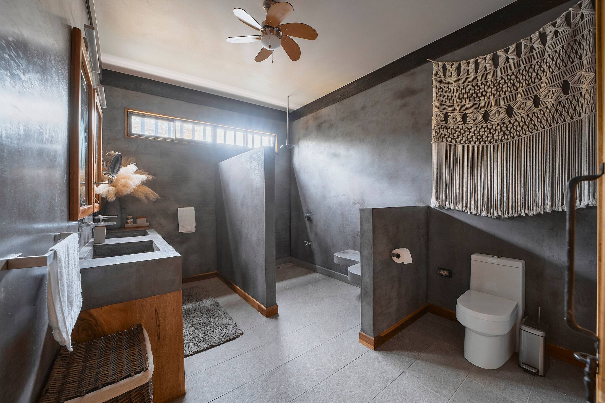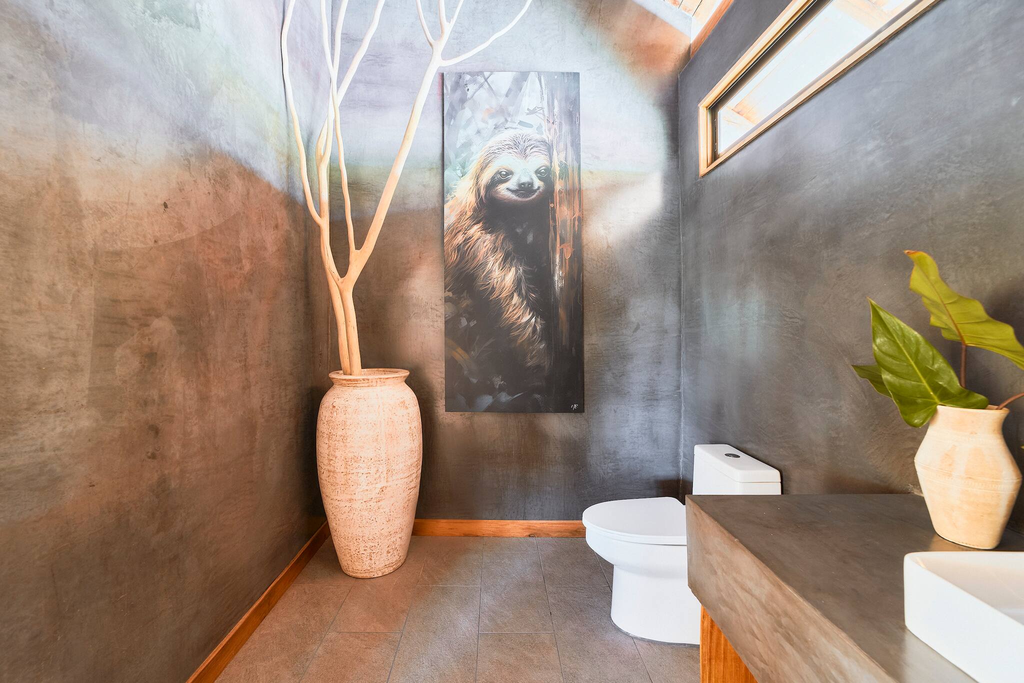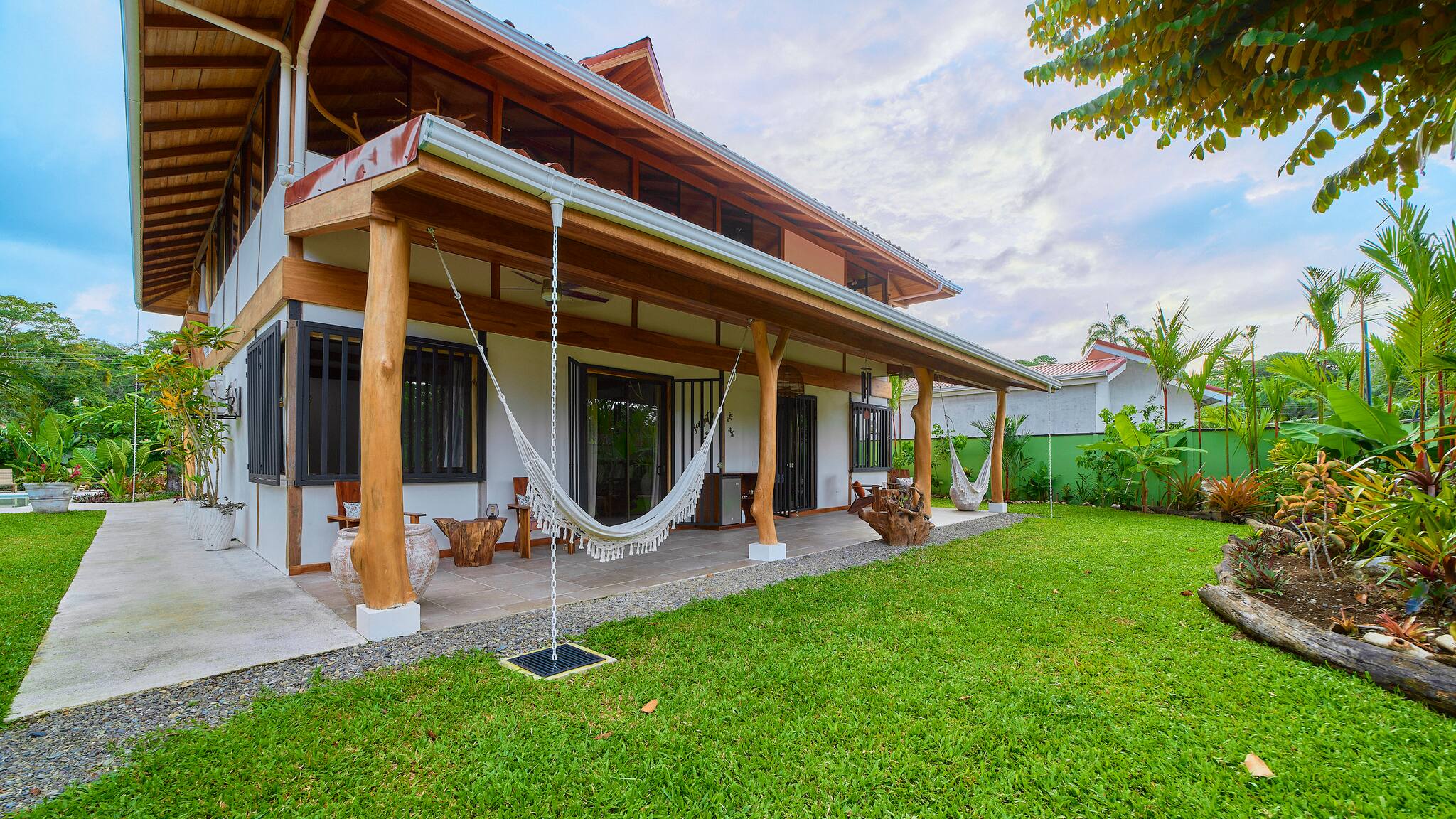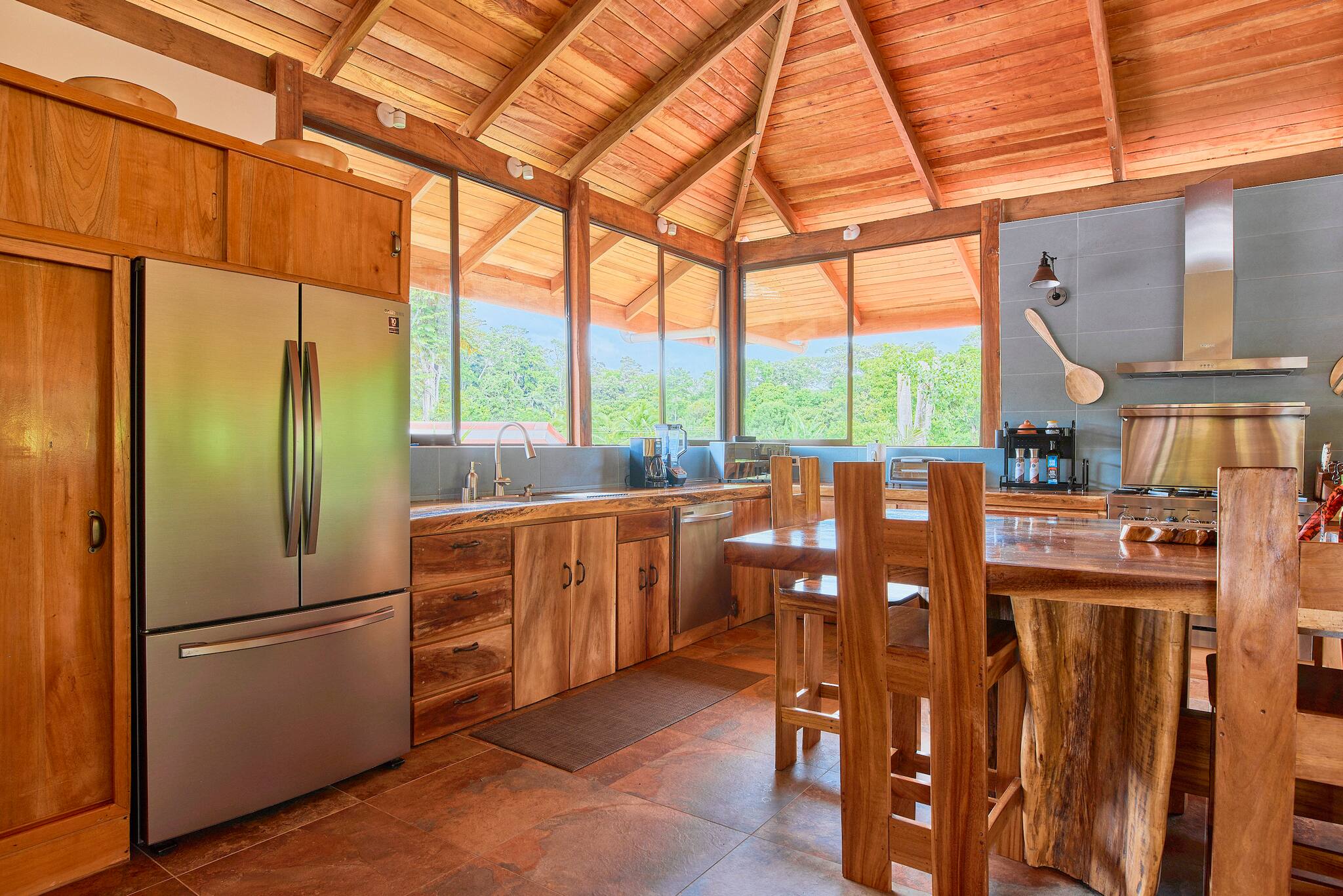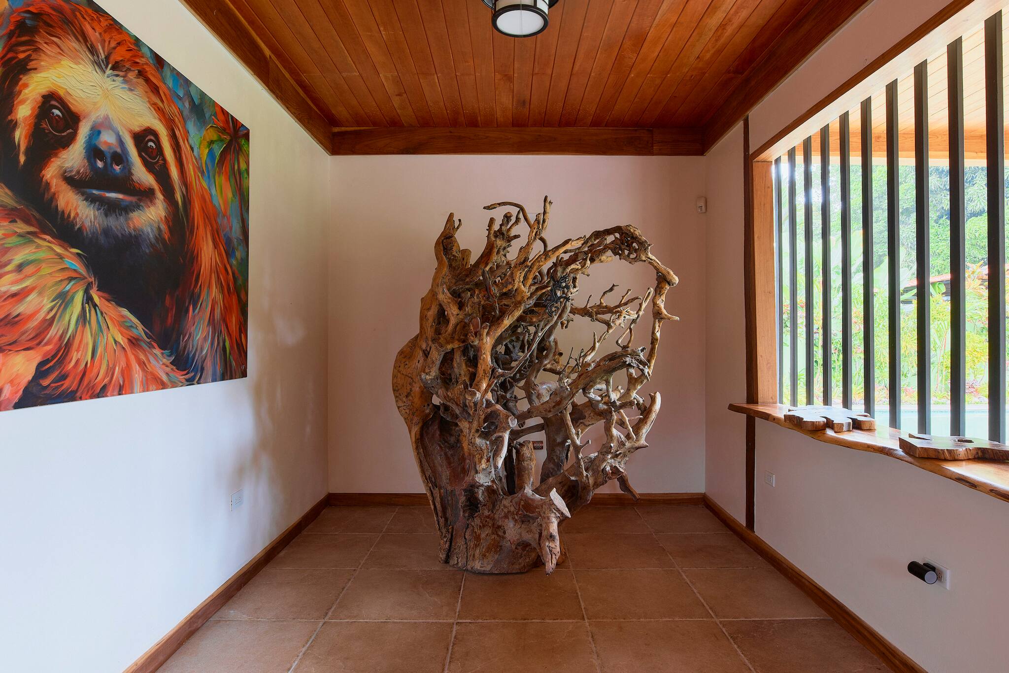 The home accommodates up to six guests and features two spacious master suites on the ground floor—each with a California king bed, an individual sofa bed, air conditioning, Smart TV, and a private luxury bathroom with rainfall shower. Both rooms open to a peaceful back patio with hammocks. Upstairs, you'll find an open living space with a chef-designed kitchen, oversized dining table, lounge area, a guest half-bath, and stunning woodwork throughout. The property also includes a gas BBQ, high-speed internet, parking for two vehicles, and welcomes long-term stays. Casa Masha is more than a vacation rental—it’s a living work of art that embodies the spirit of Costa Rica.