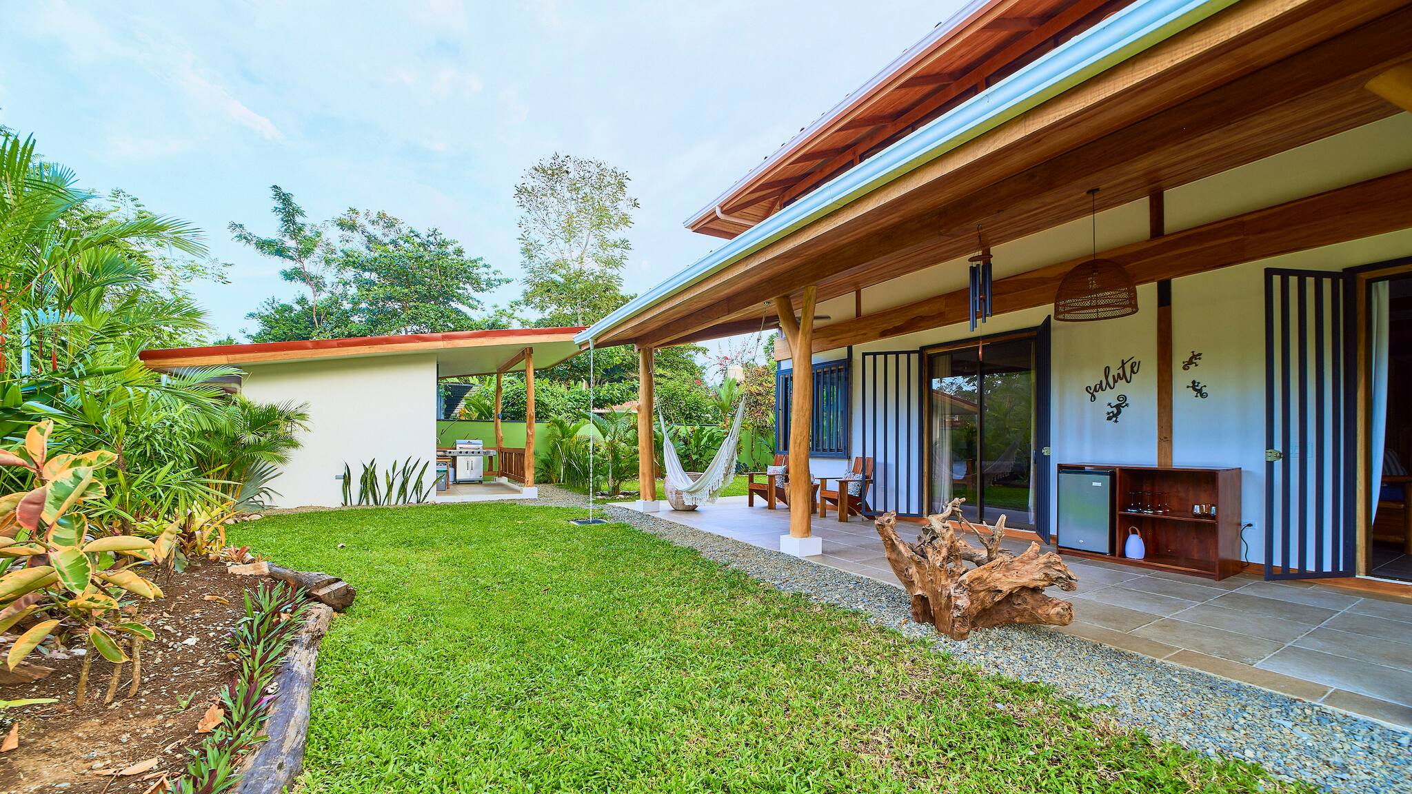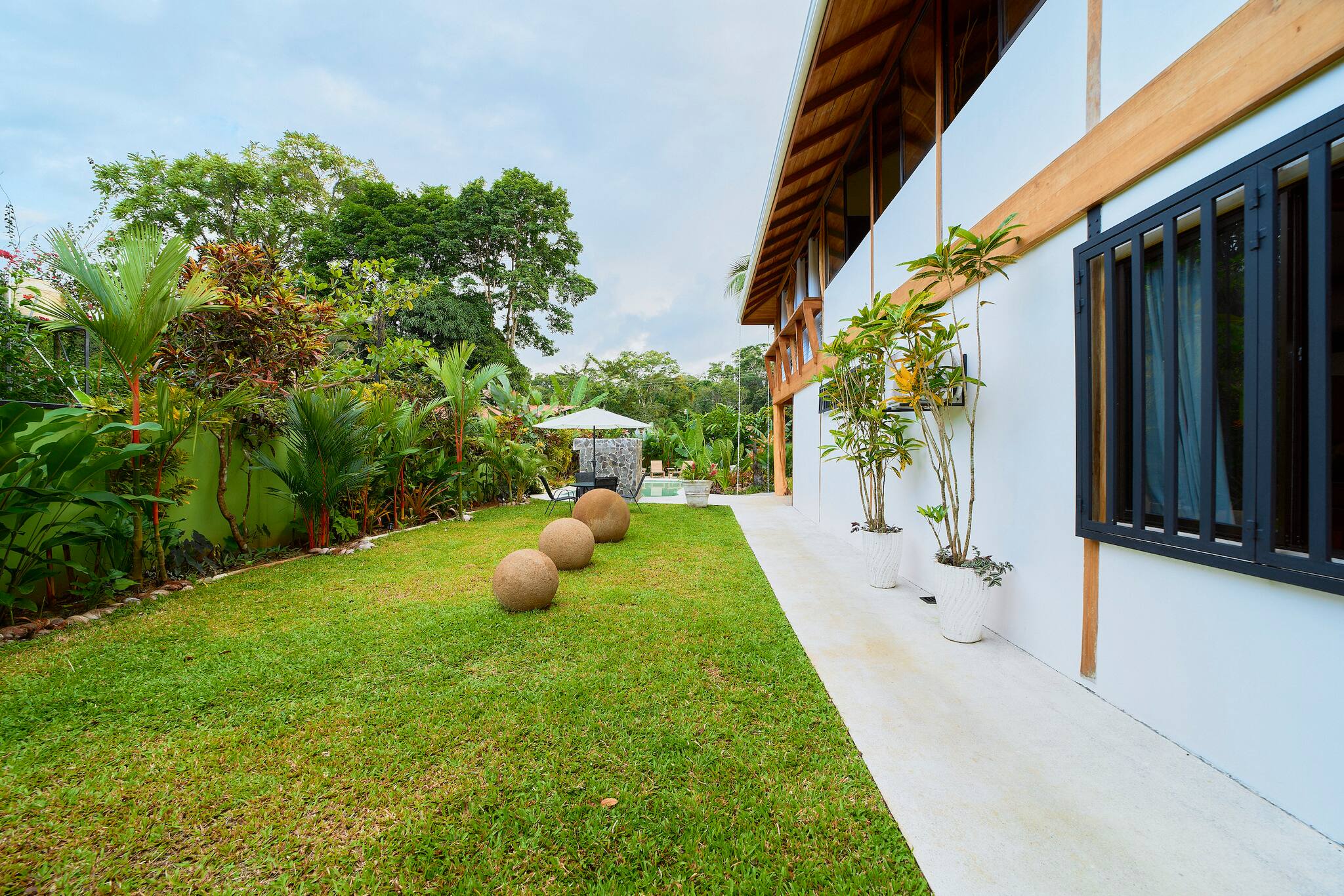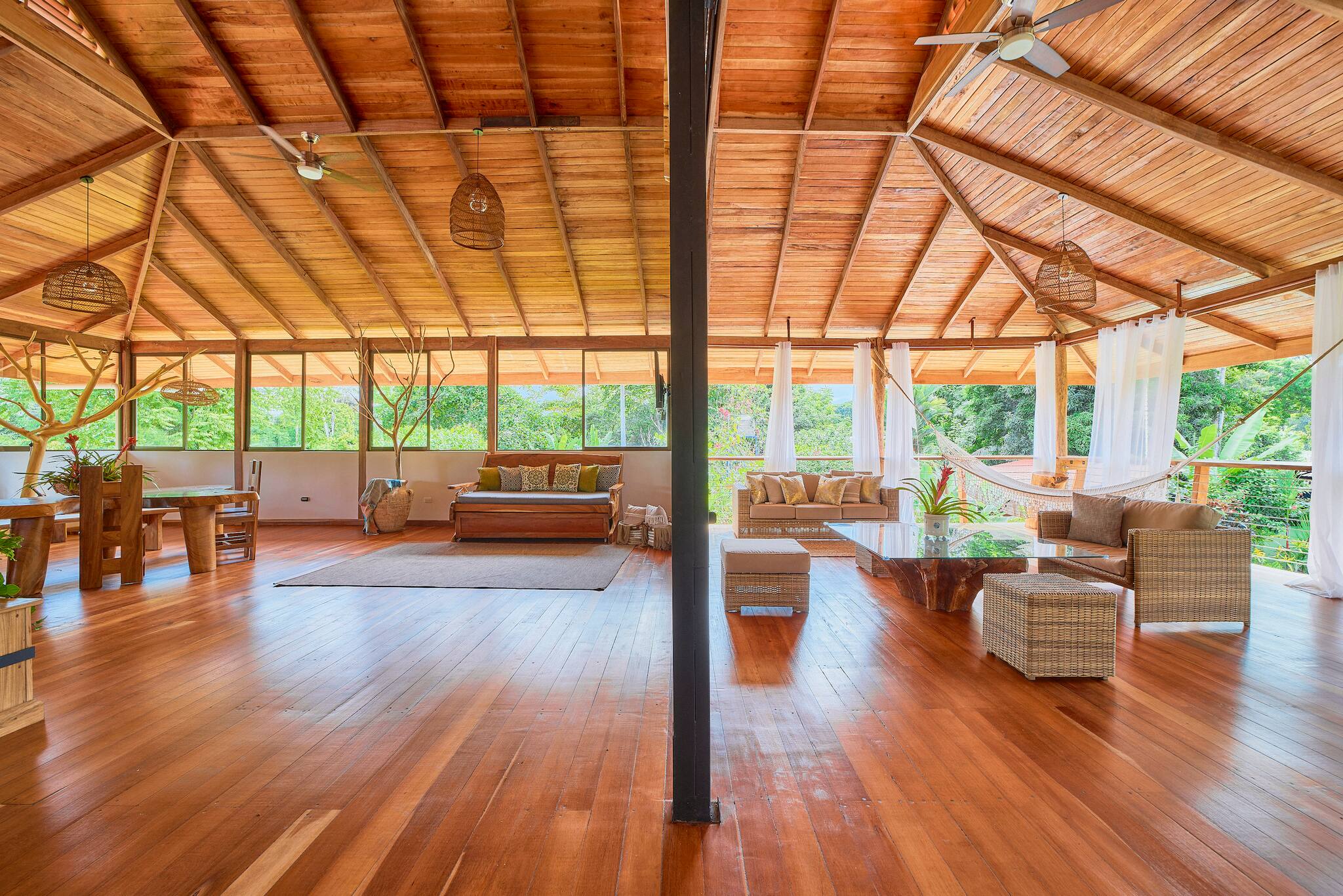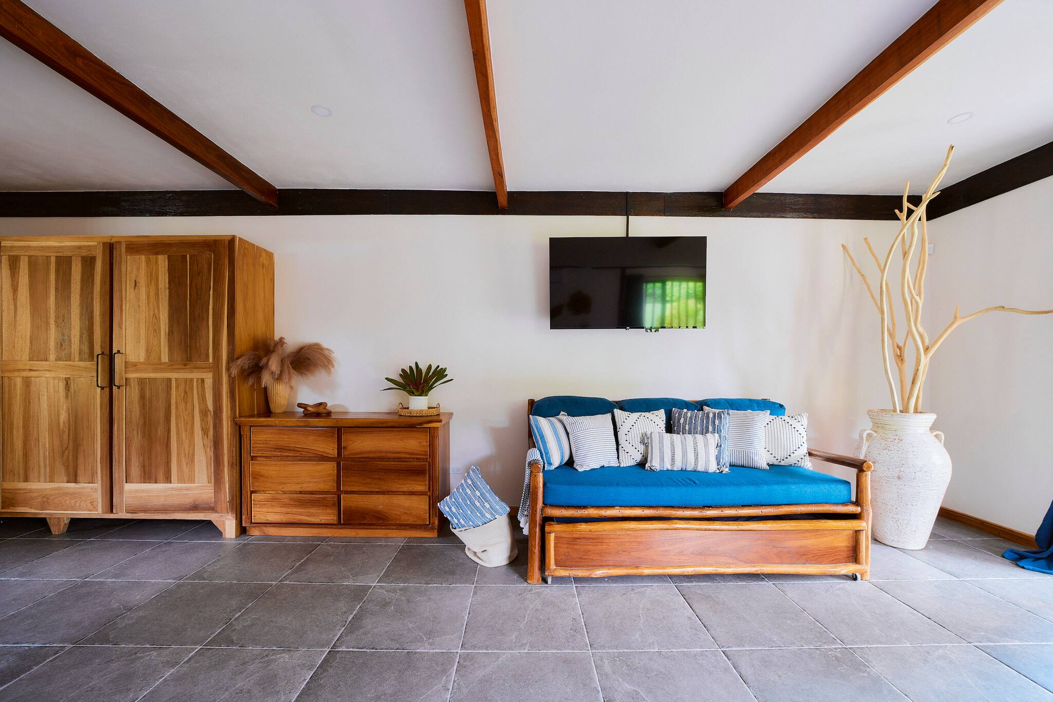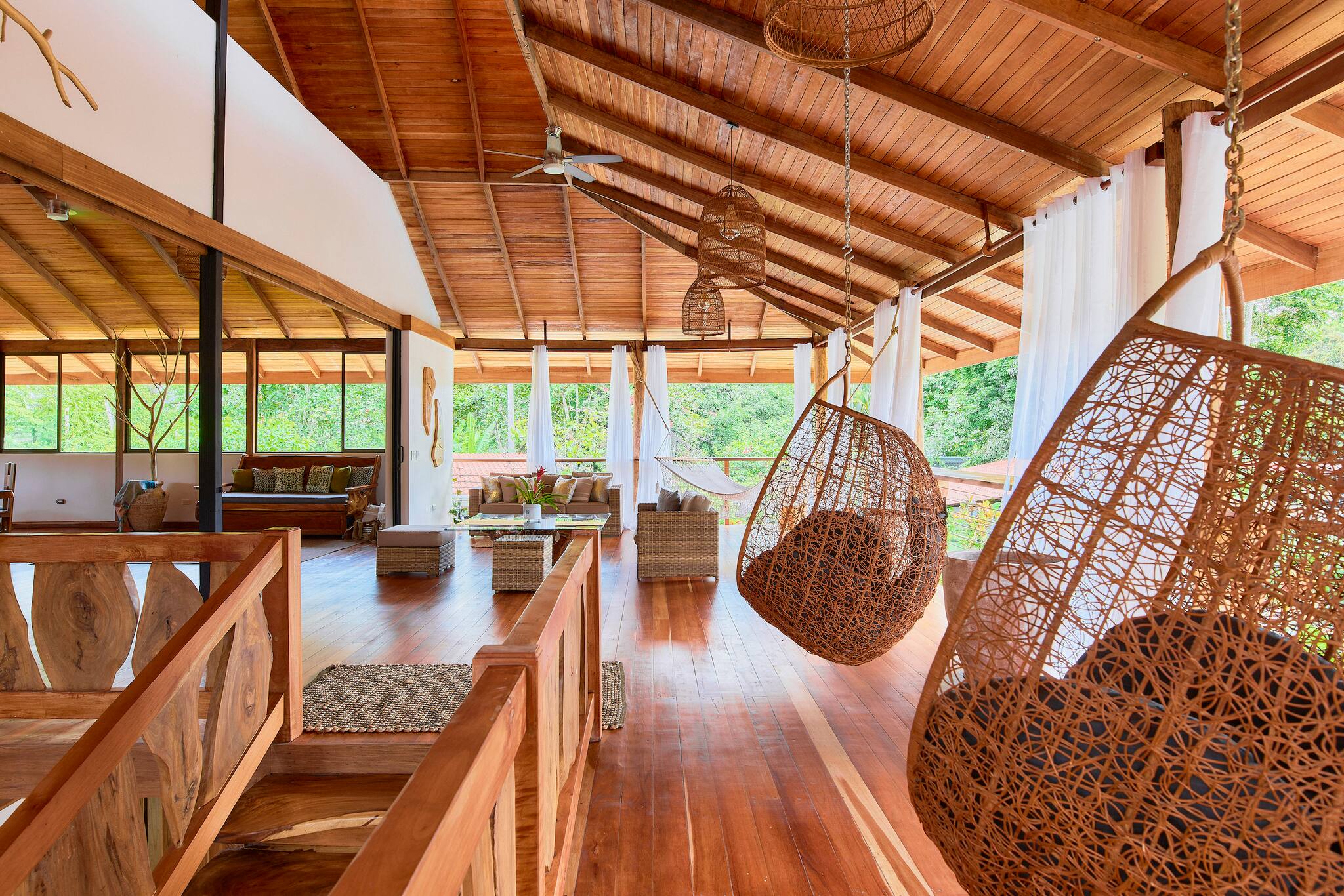 The home accommodates up to six guests and features two spacious master suites on the ground floor—each with a California king bed, an individual sofa bed, air conditioning, Smart TV, and a private luxury bathroom with rainfall shower. Both rooms open to a peaceful back patio with hammocks. Upstairs, you'll find an open living space with a chef-designed kitchen, oversized dining table, lounge area, a guest half-bath, and stunning woodwork throughout. The property also includes a gas BBQ, high-speed internet, parking for two vehicles, and welcomes long-term stays. Casa Masha is more than a vacation rental—it’s a living work of art that embodies the spirit of Costa Rica.