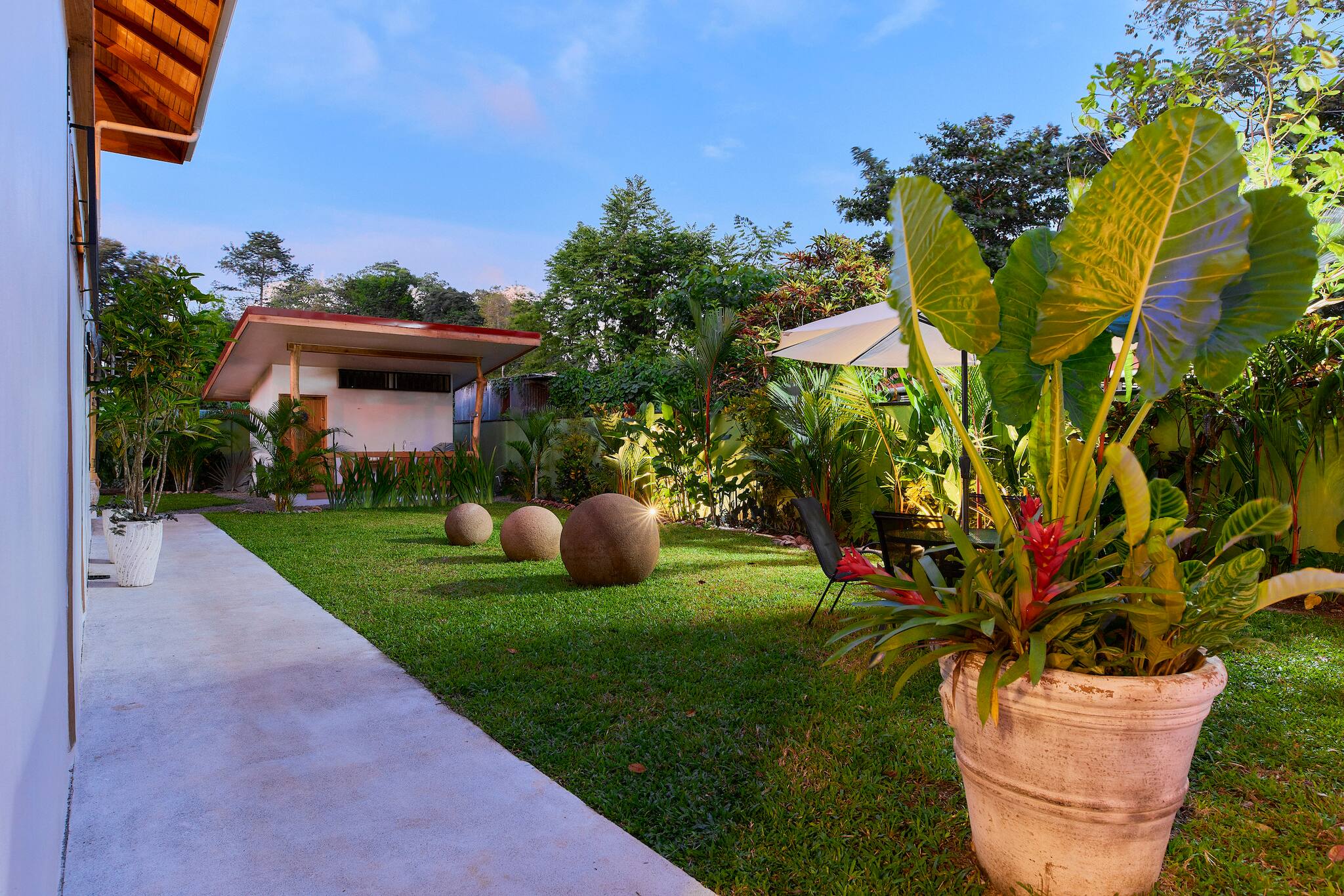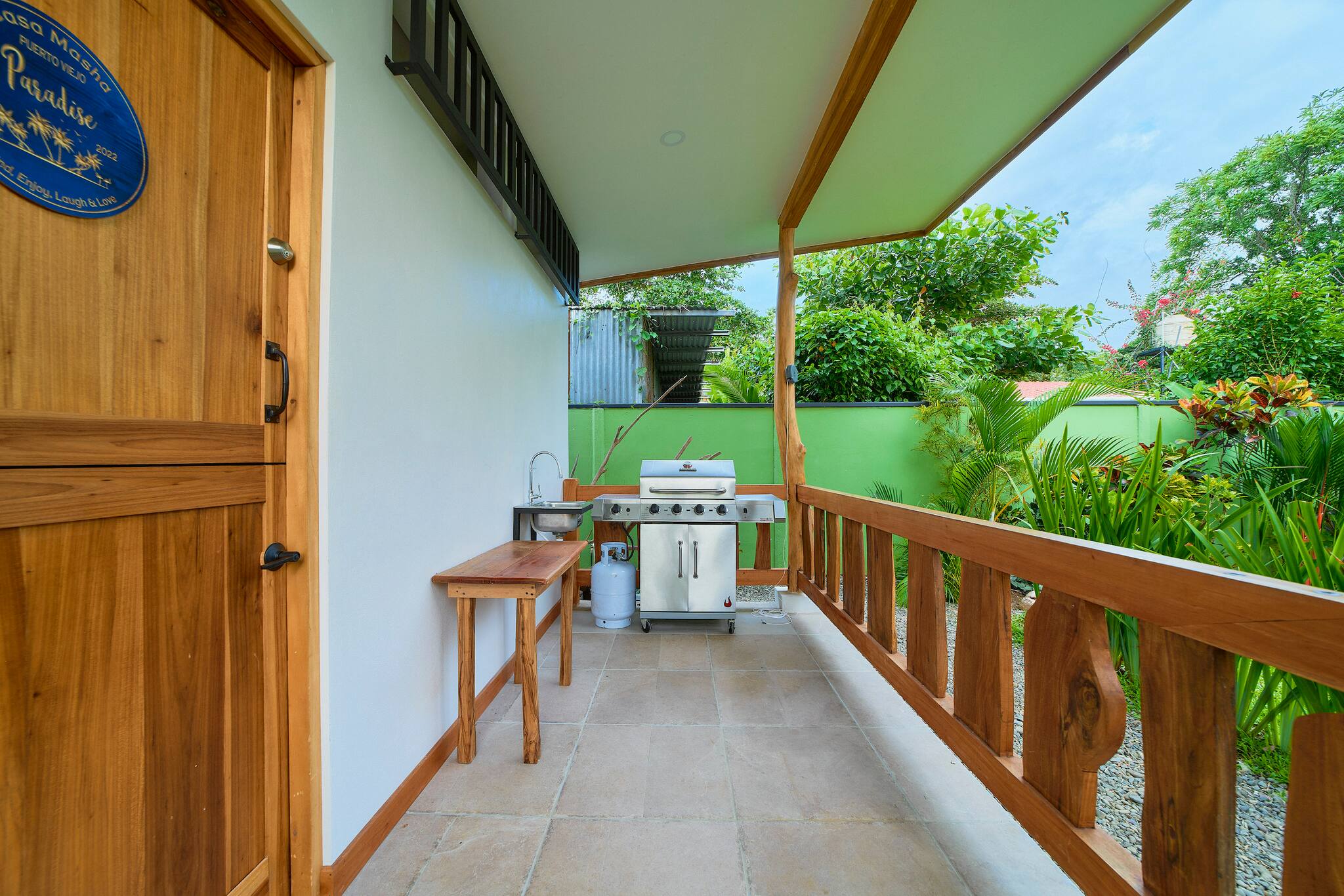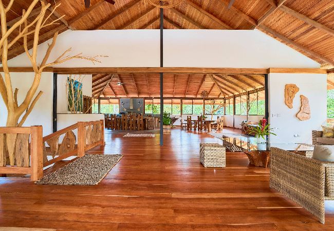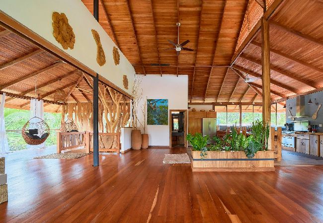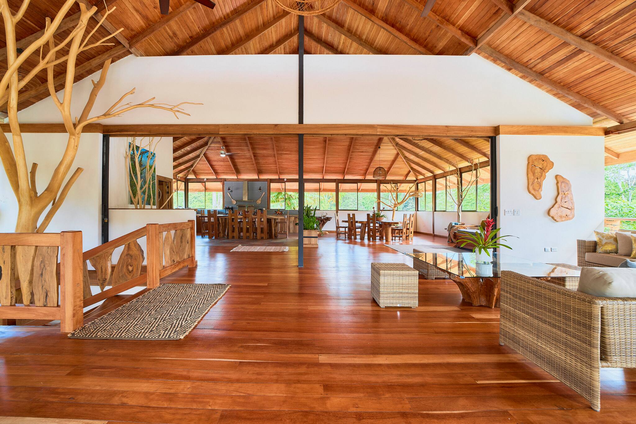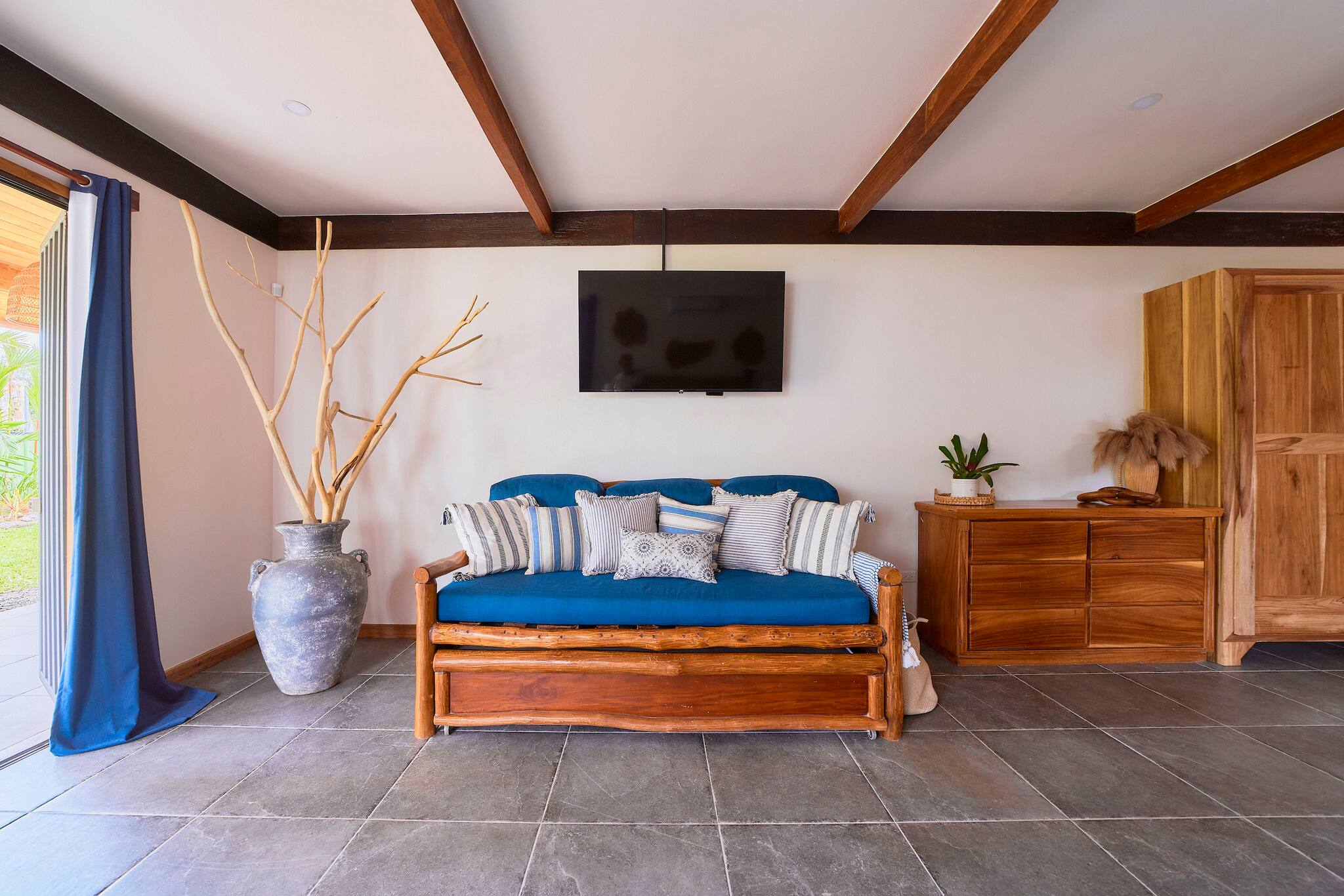 The home accommodates up to six guests and features two spacious master suites on the ground floor—each with a California king bed, an individual sofa bed, air conditioning, Smart TV, and a private luxury bathroom with rainfall shower. Both rooms open to a peaceful back patio with hammocks. Upstairs, you'll find an open living space with a chef-designed kitchen, oversized dining table, lounge area, a guest half-bath, and stunning woodwork throughout. The property also includes a gas BBQ, high-speed internet, parking for two vehicles, and welcomes long-term stays. Casa Masha is more than a vacation rental—it’s a living work of art that embodies the spirit of Costa Rica.