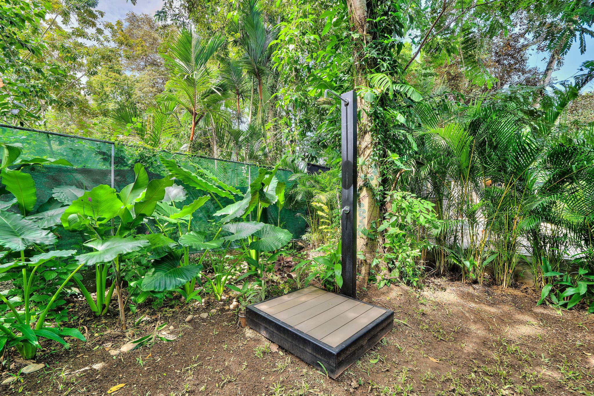 Guests also have access to a refreshing shared pool surrounded by gardens, an outdoor shower, a half bathroom in the pool area, secure parking with video surveillance, and an EV charging station. Each villa includes two complimentary bicycles to explore the area at your own pace. -