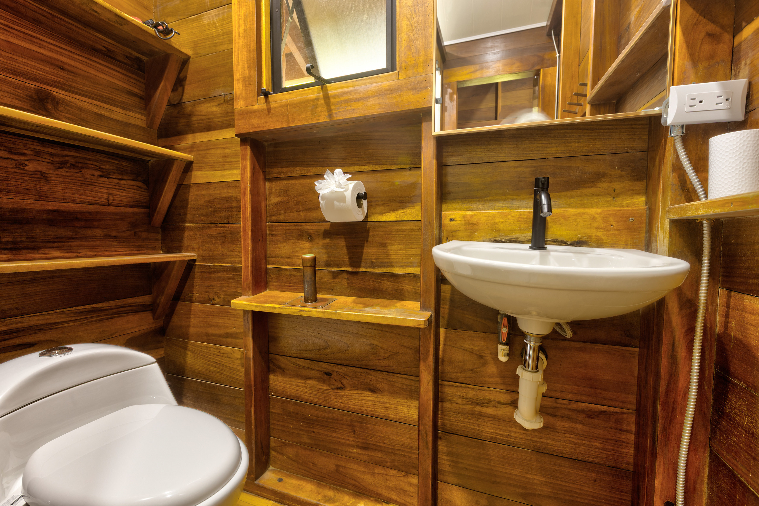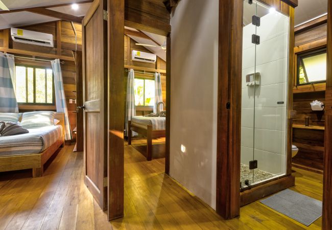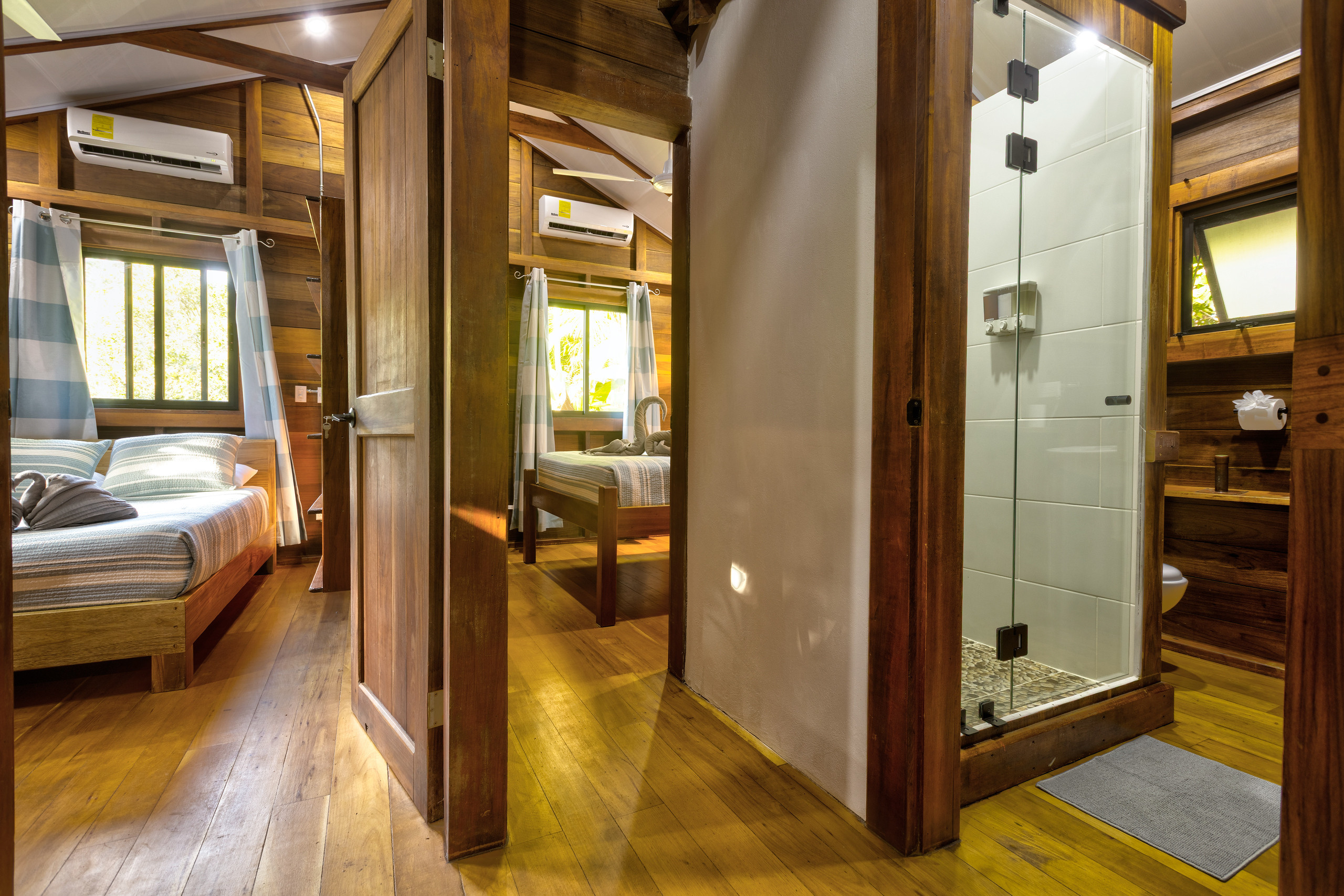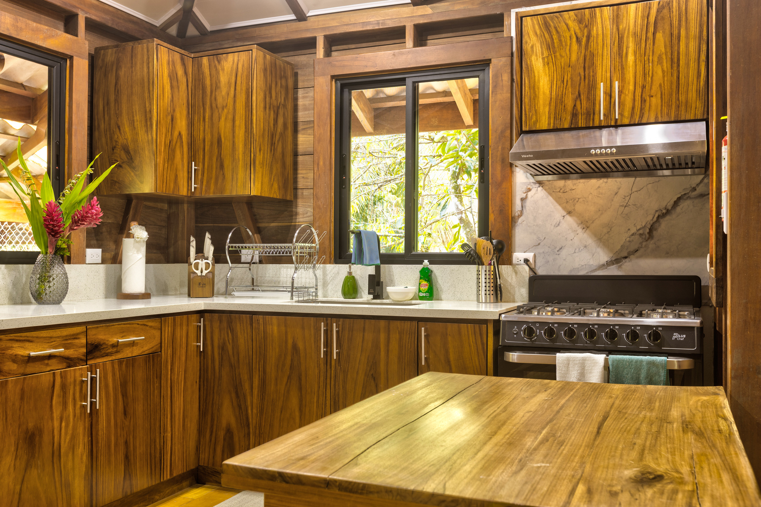 Casa Tucan features 2 bedrooms, 2 bathrooms, and full air conditioning throughout. The beautifully designed kitchen with jungle views is fully equipped and includes a reverse osmosis water filter for clean drinking water.