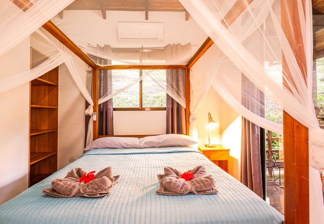 This beautiful 13-acre retreat offers a private piece of paradise, with stunning views and ample space for your group. Your house is just 1 of 2 houses on the property's 3-acre front lot. The garden has many exotic fruit trees such as mangoes, mangosteens, limes, bananas, soursop, jackfruits, sugar cane, and much more. The beach is just a 5-minute walk away. In each bedroom, there is a double bed, a television, and an air conditioning unit. Additionally, the terrace is perfect for sitting outdoors or enjoying breakfast while taking in the landscape.