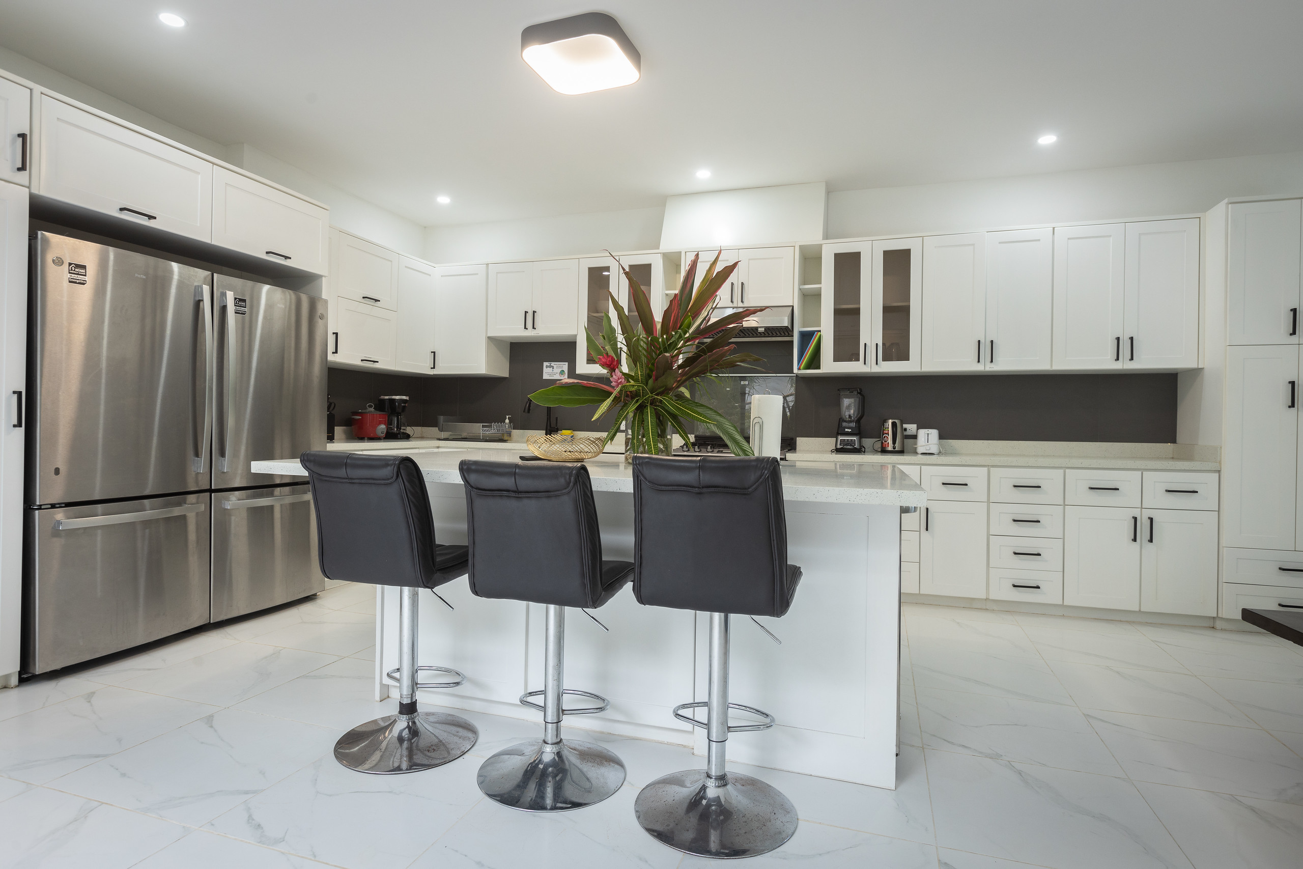 The two large freezers also produce ice — perfect for cocktails or fresh tropical drinks by the pool.