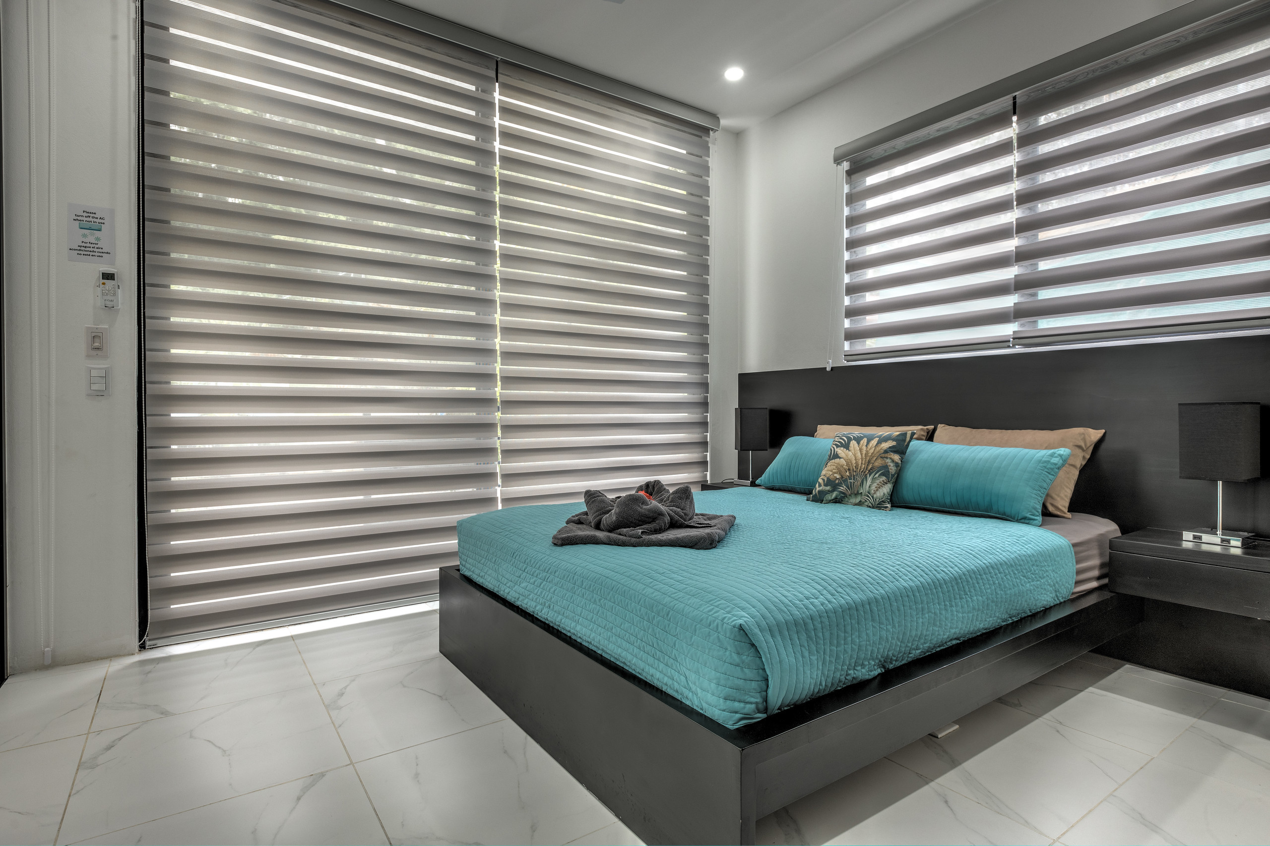 Villa Presidente is an impressive five-bedroom villa that offers exceptional comfort and design. Each bedroom includes air conditioning, a private bathroom, and a private balcony — with four king-sized beds and one queen-sized bed in total. Two bedrooms are located on the ground floor, and three are on the upper level.