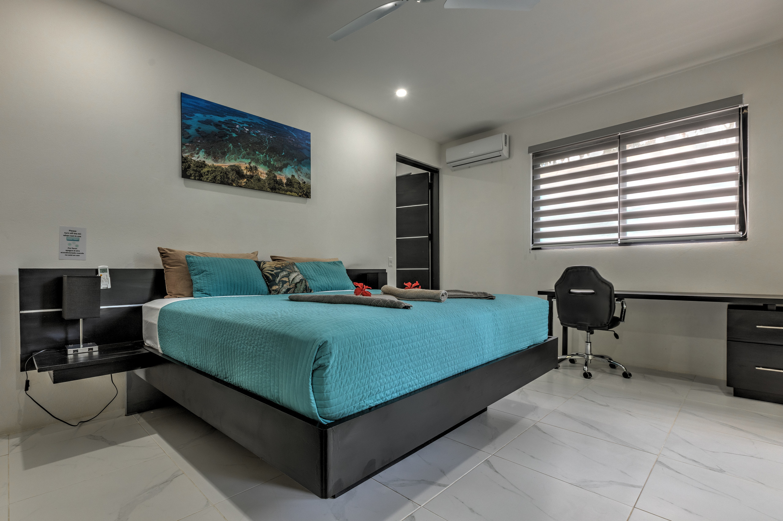 - Second Bedroom: A cozy retreat with a queen-size bed, working desk, closet, ceiling fan, and its own private bathroom.